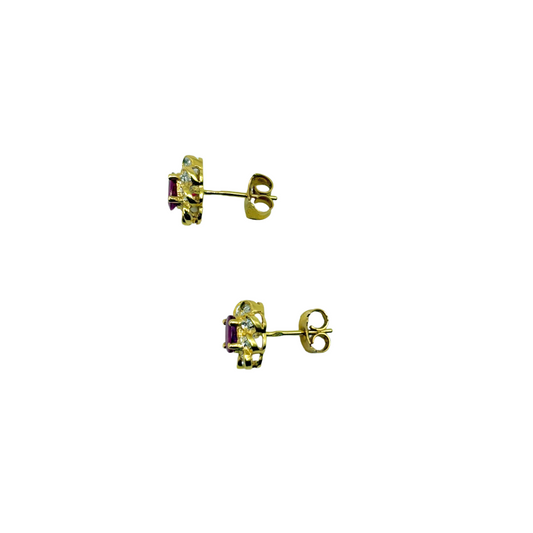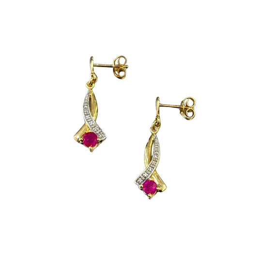 Boucles D'oreilles - Or Jaune/Blanc 750 & Rubis