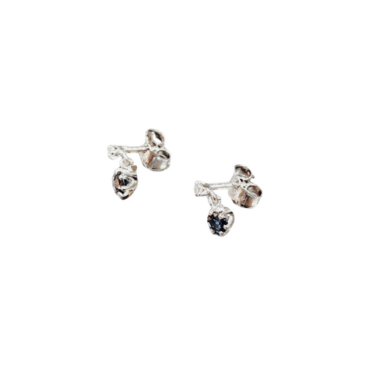 Boucles D'oreilles Puces Vintage - Or Blanc 750 Saphirs & Diamants