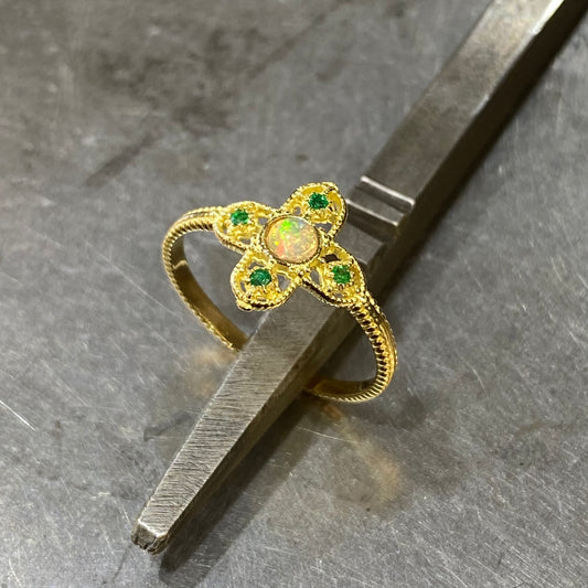 Bague Croix Céleste - Or Jaune 750 Opale & Émeraudes
