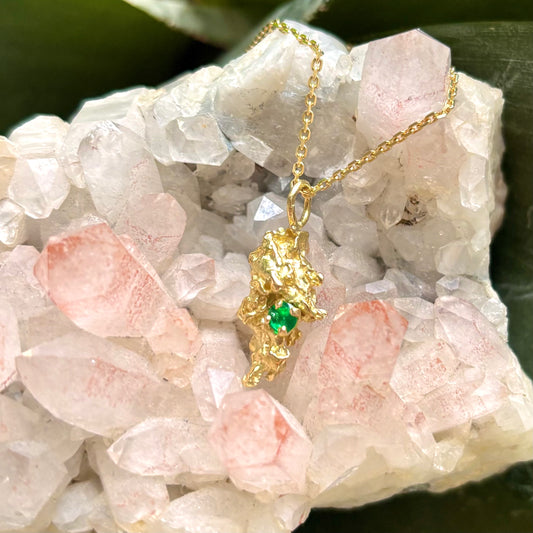 Pendentif Pépite - Or Jaune 750/1000 & Émeraude