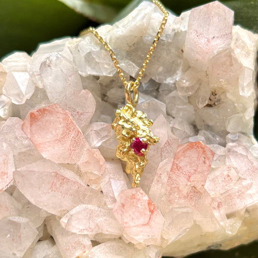 Pendentif Pépite - Or Jaune 750/1000 & Rubis