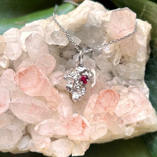 Pendentif Pépite - Or Blanc 750/1000 & Rubis