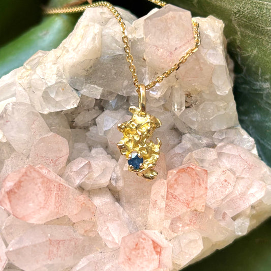 Pendentif Pépite - Or Jaune 750/1000 & Saphir