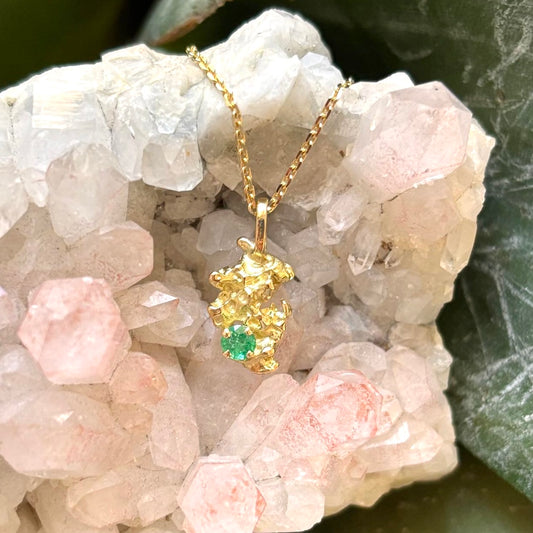 Pendentif Pépite - Or Jaune 750/1000 & Émeraude