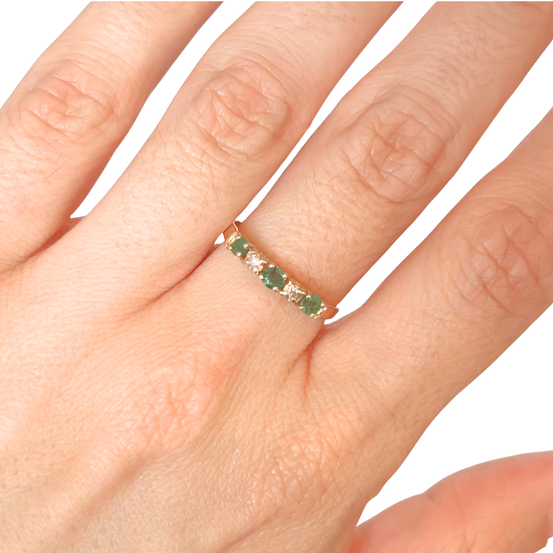 Bague Alliance - Or Jaune 750 Diamants & Émeraudes