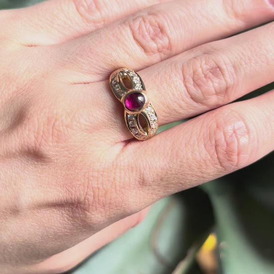Bague Entrelacs - Or Jaune 750 Rubis & Diamants