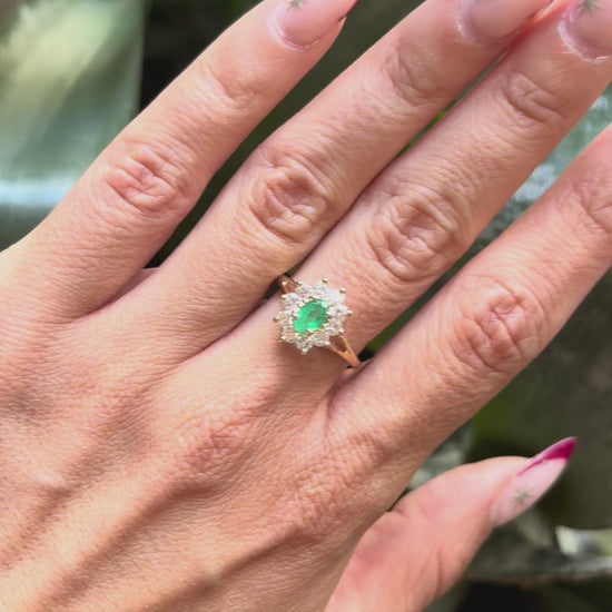 Bague Marguerite - Or Jaune 750 Émeraude & Diamants