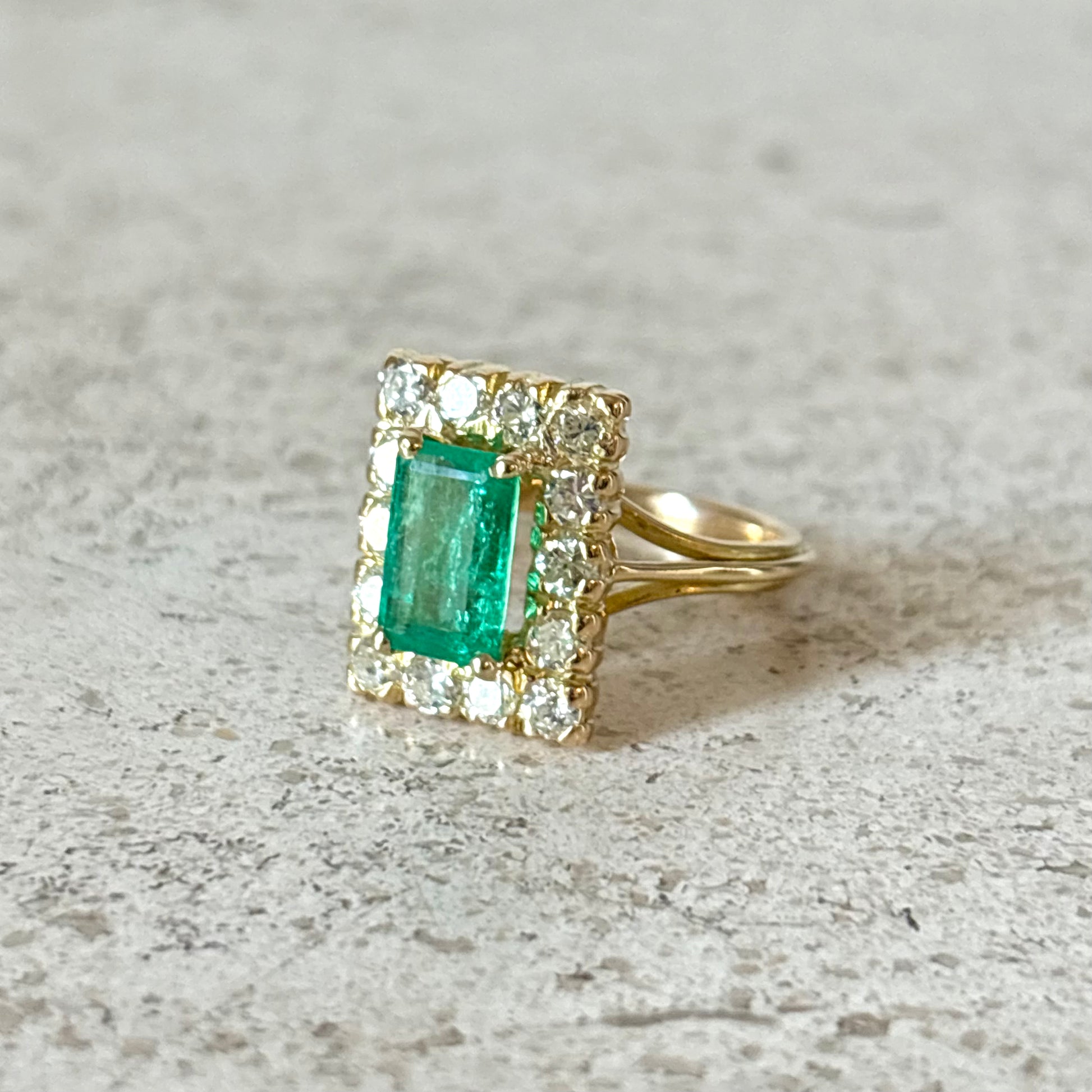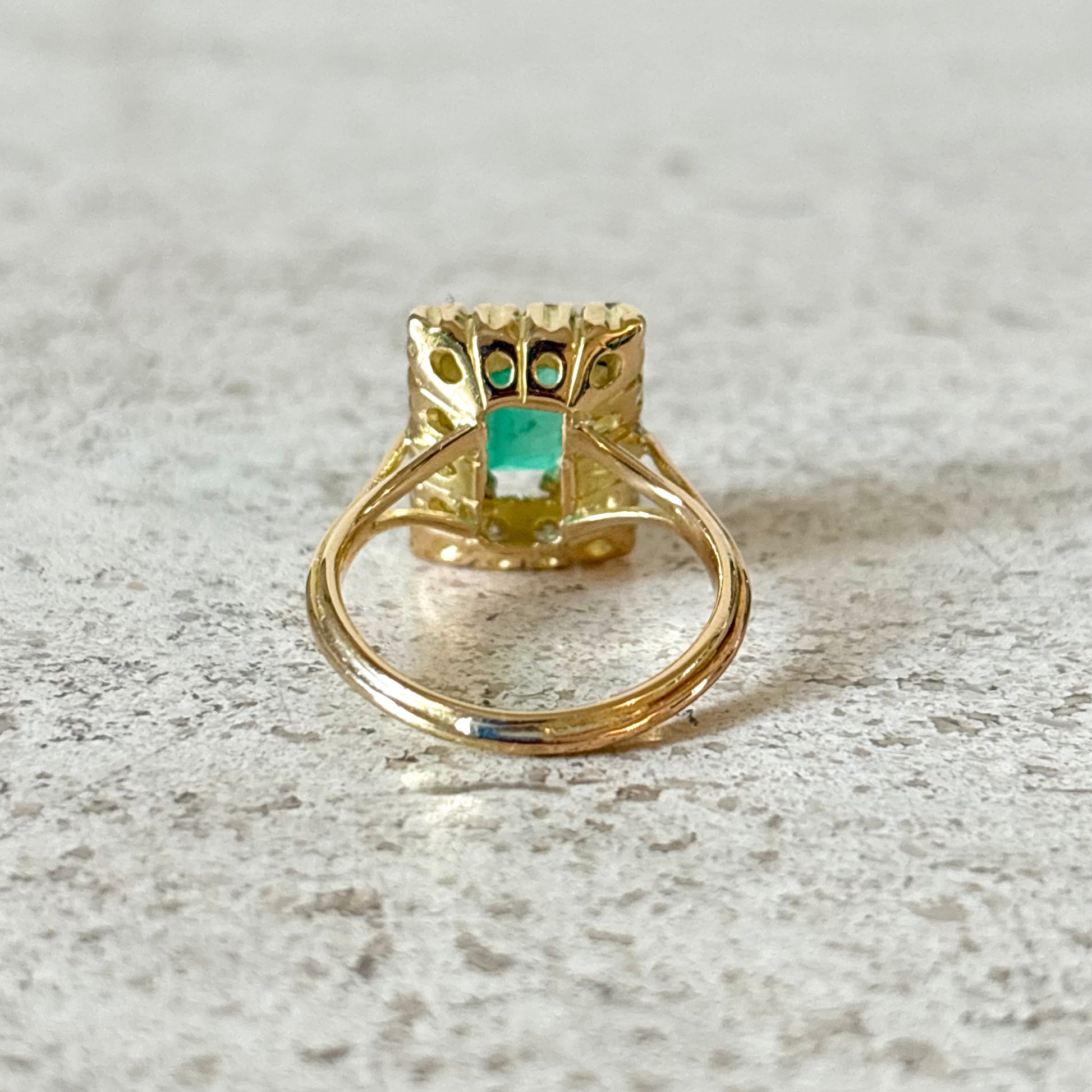 Bague Marguerite Vintage - Or Jaune 750 Émeraude & Diamants