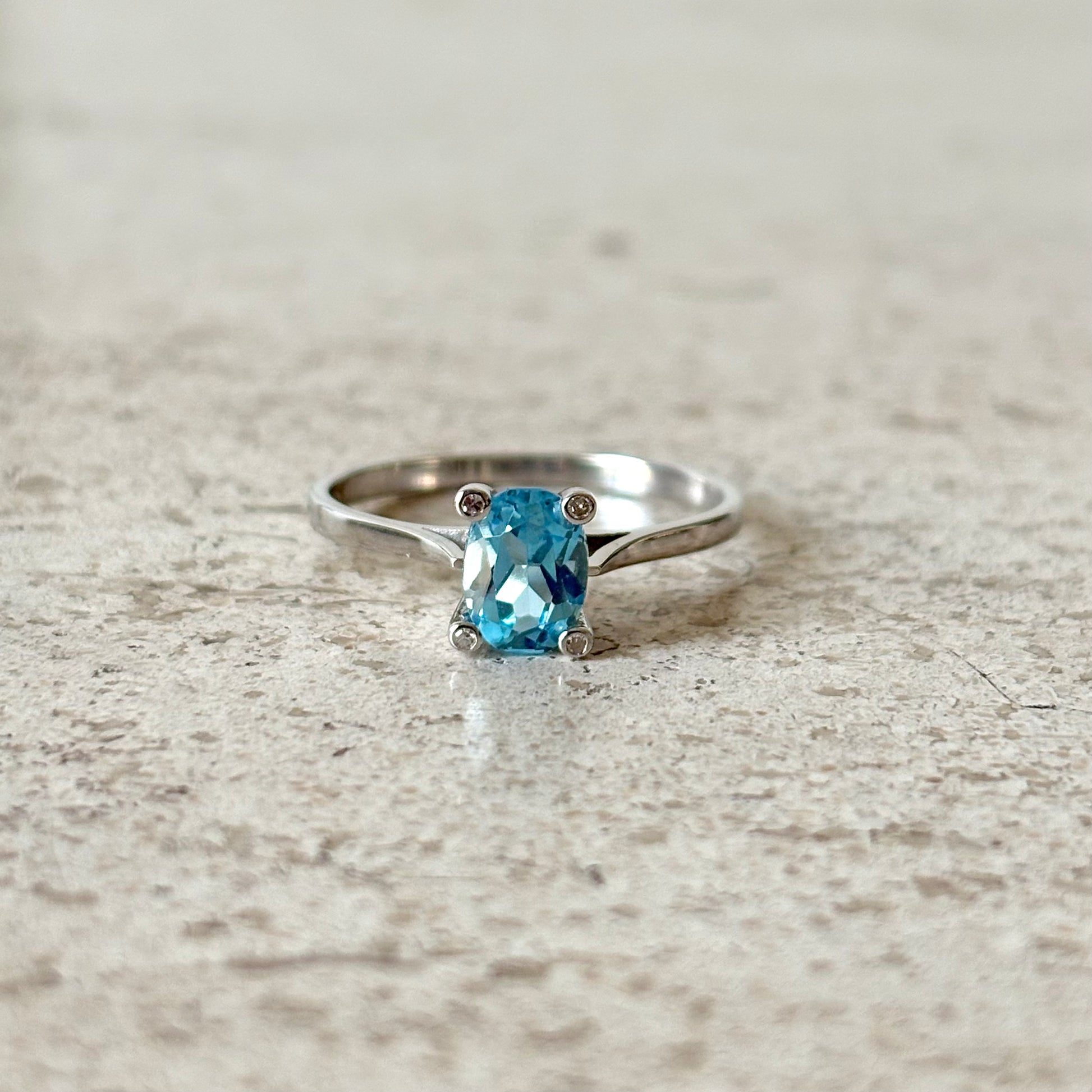 Bague - Or Blanc 750 Diamants & Aigue-Marine