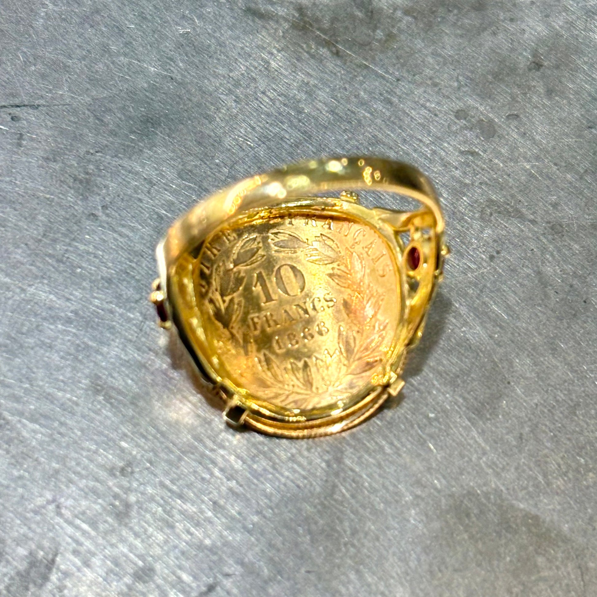 Bague Pièce - Or Jaune 750 & Pièce 10 Francs Napoléon & Émeraudes