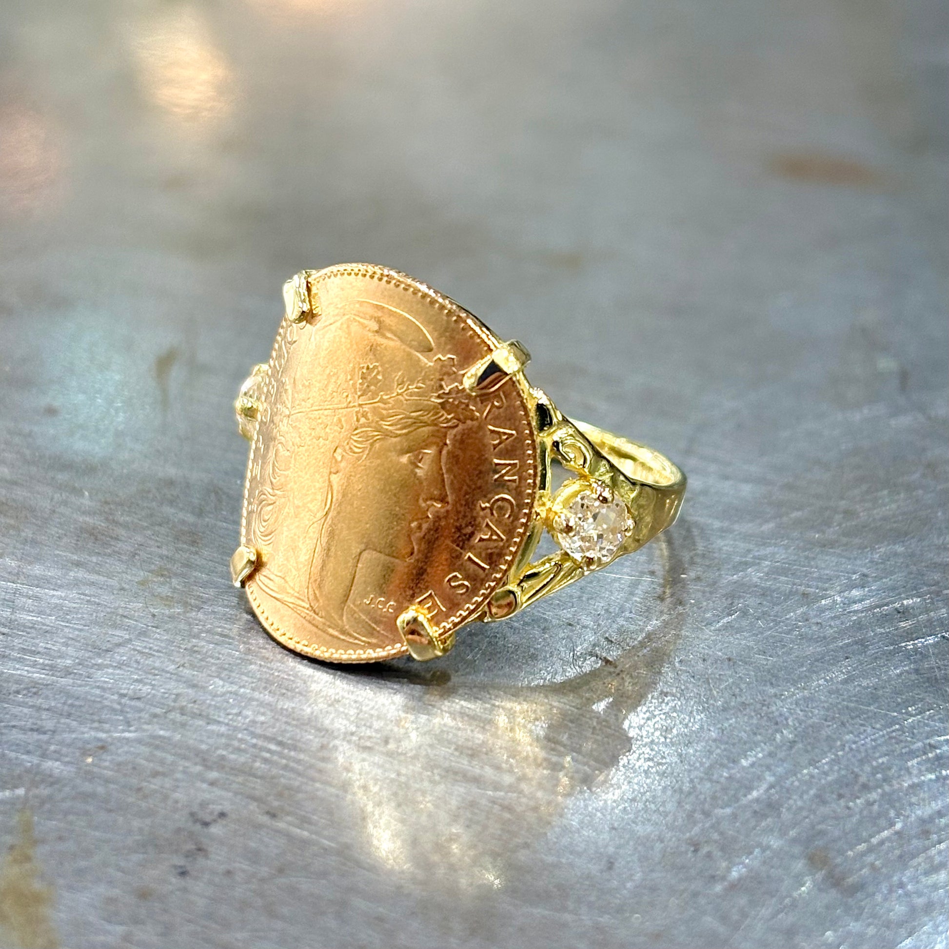 Bague Pièce - Or Jaune 750 & Pièce 10 Marianne Coq & Diamants