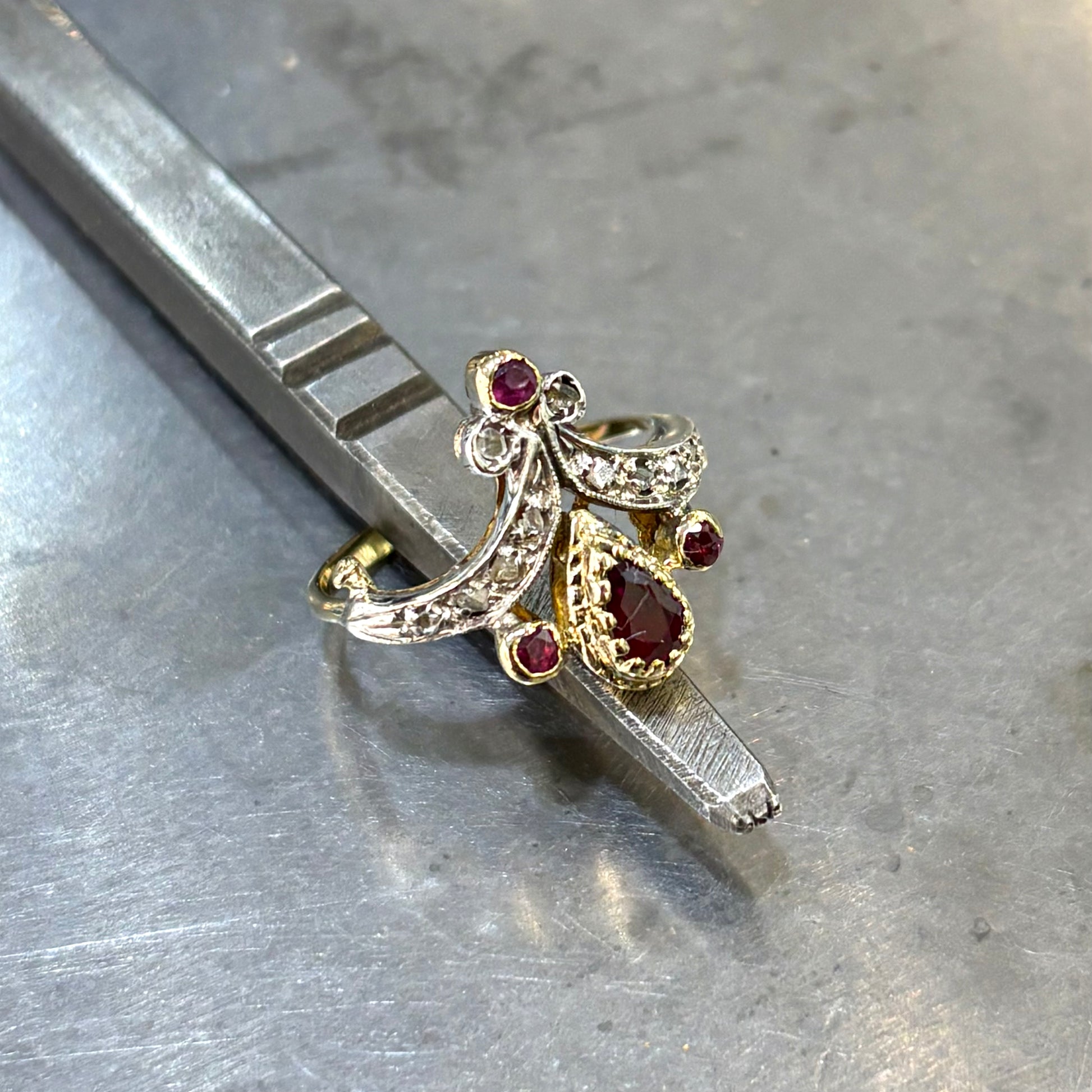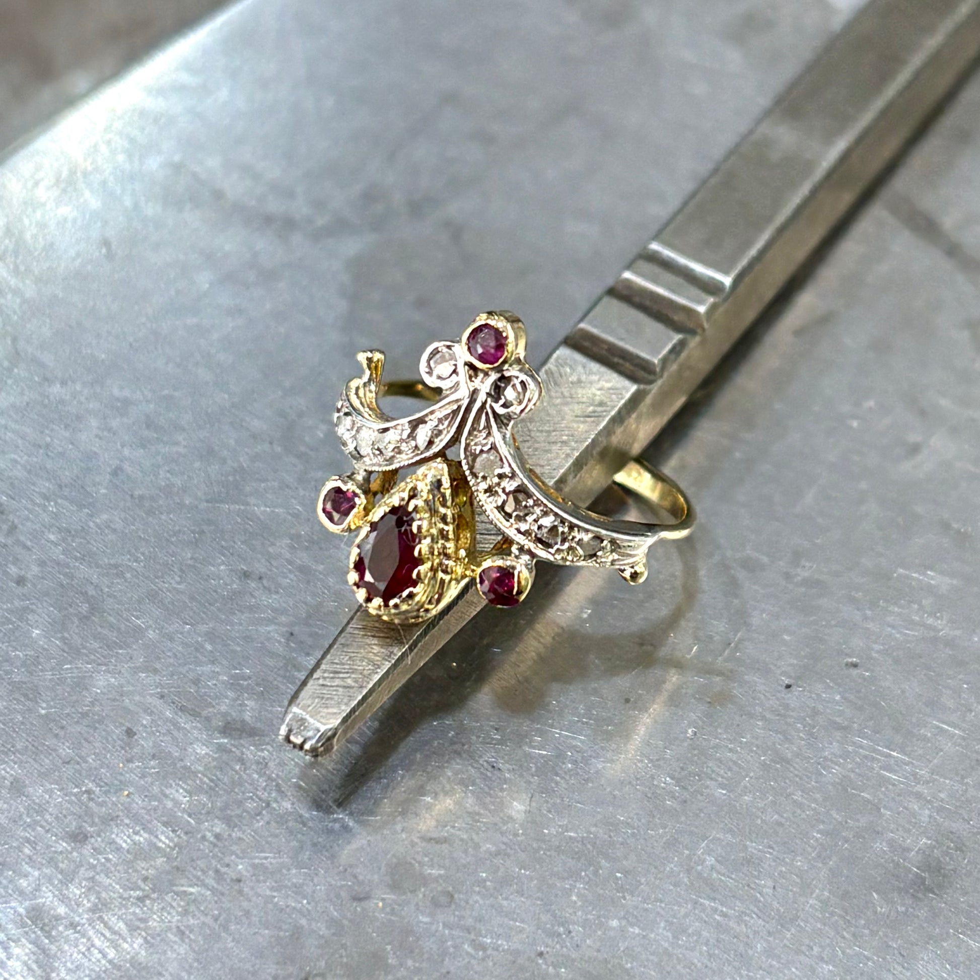 Bague Princesse Vintage - Or Jaune 750 Rubis & Diamants
