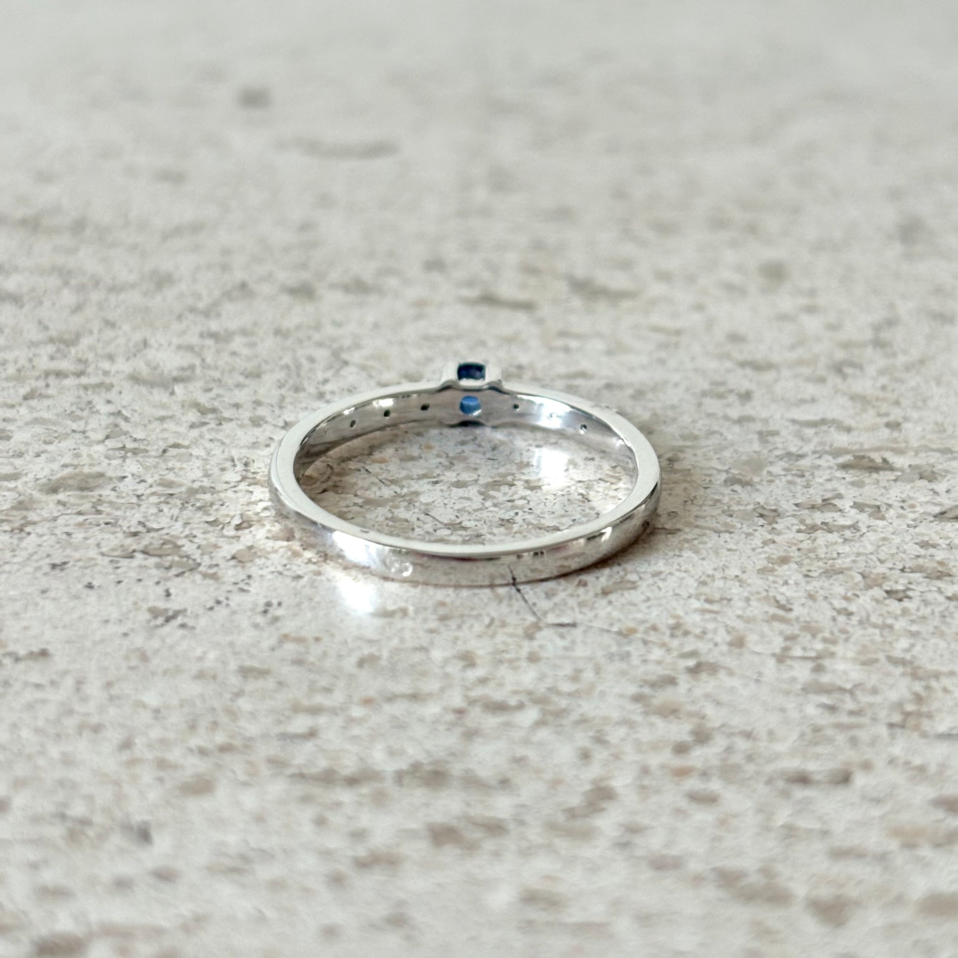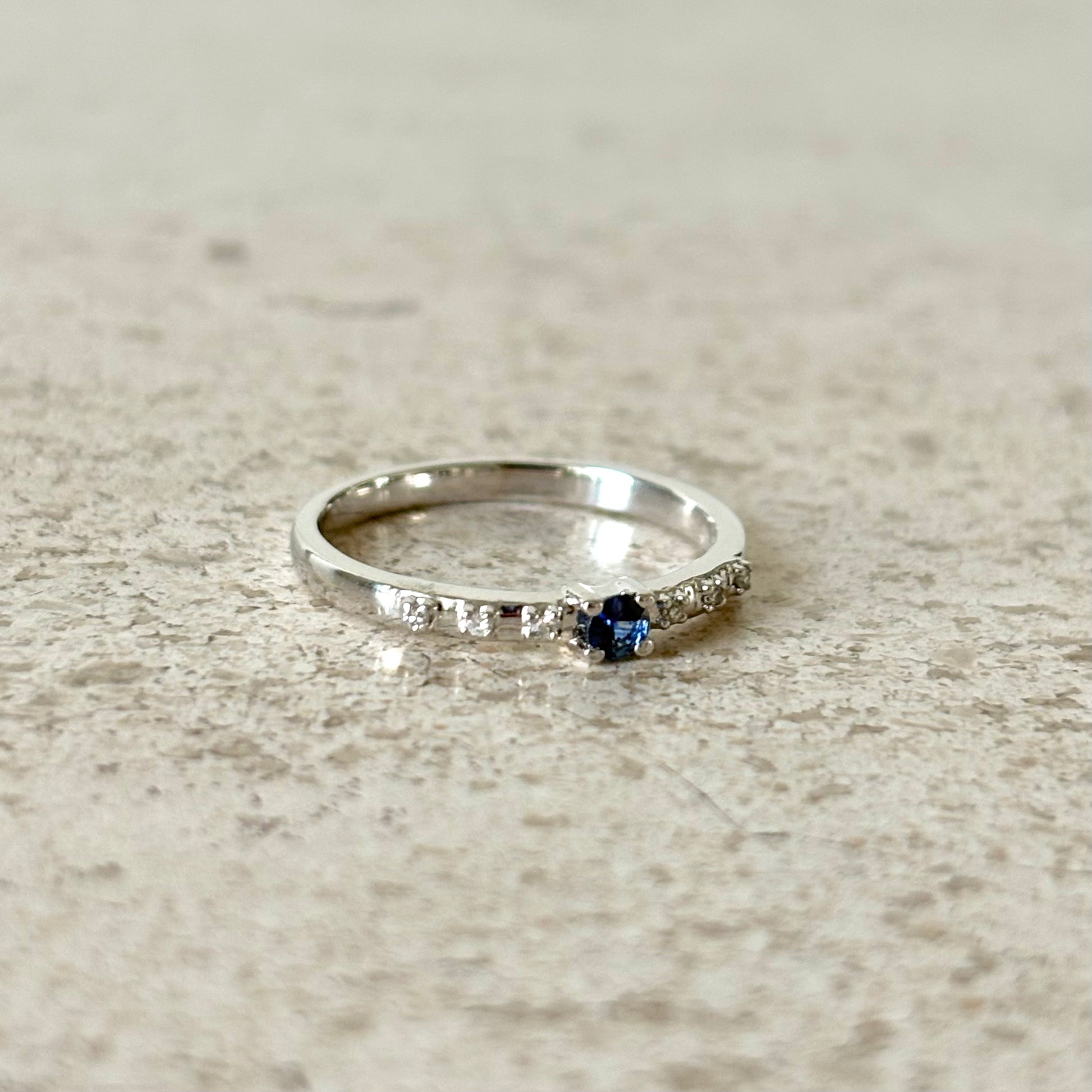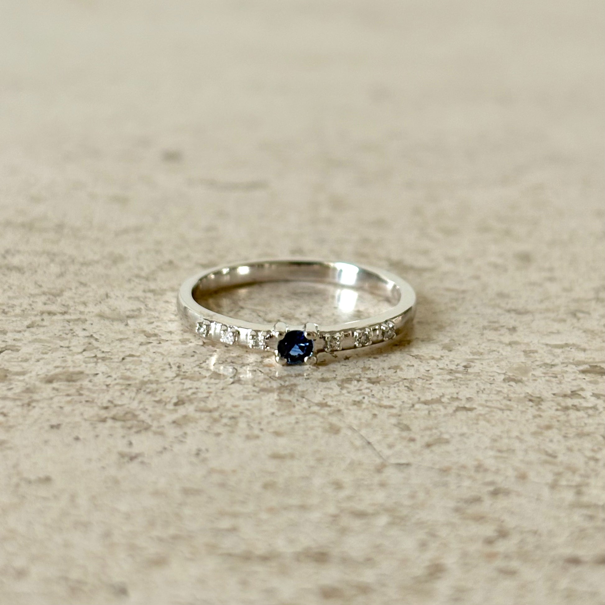 Pierres : 1 saphir 0ct10, entouré de 6 Diamants naturels pour un total de 0ct03.