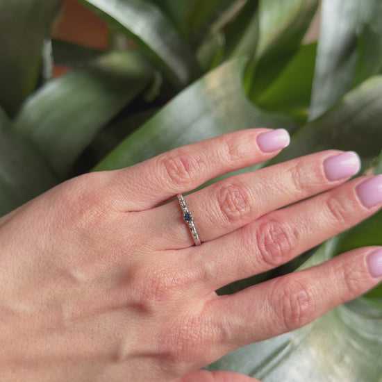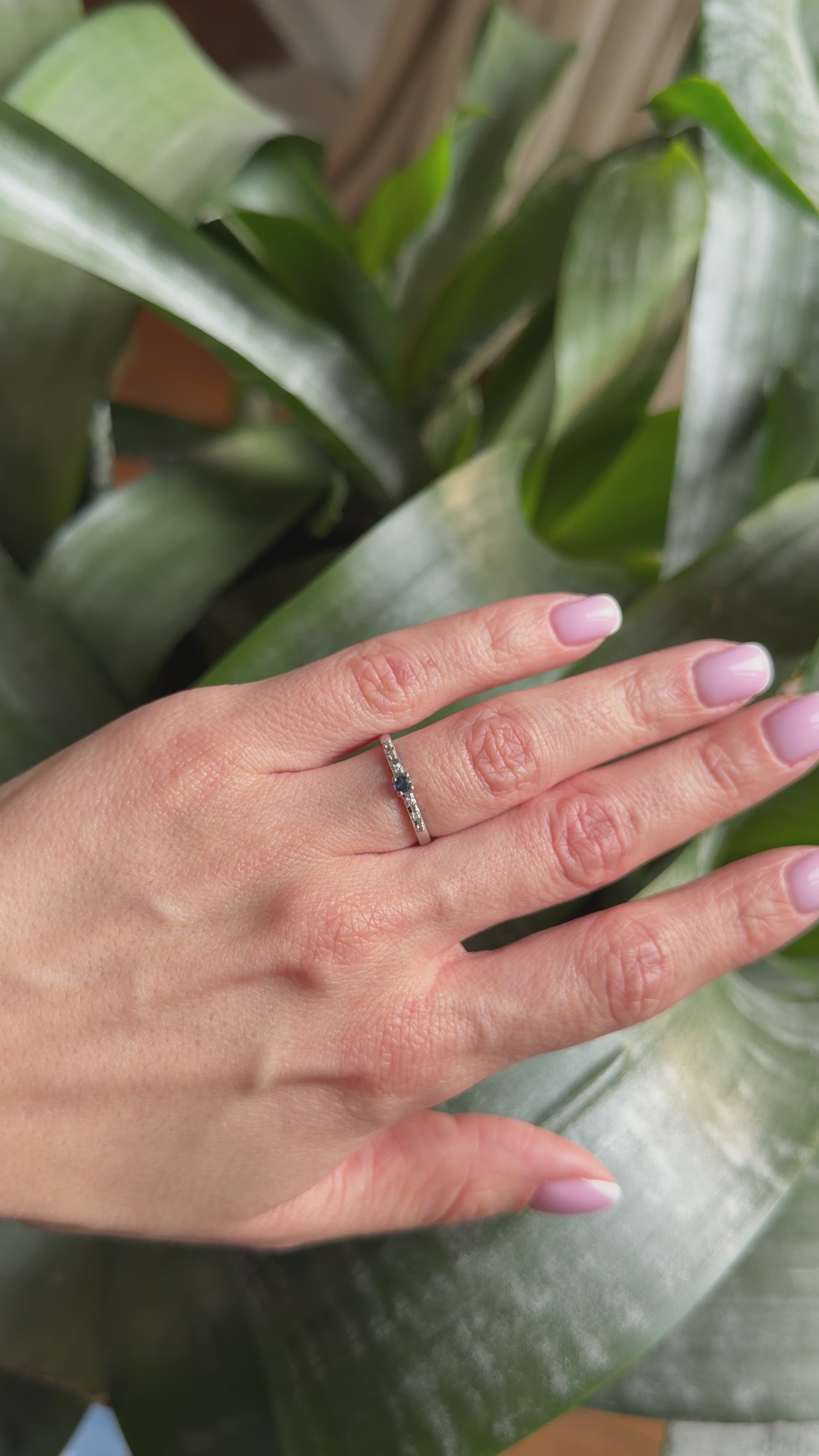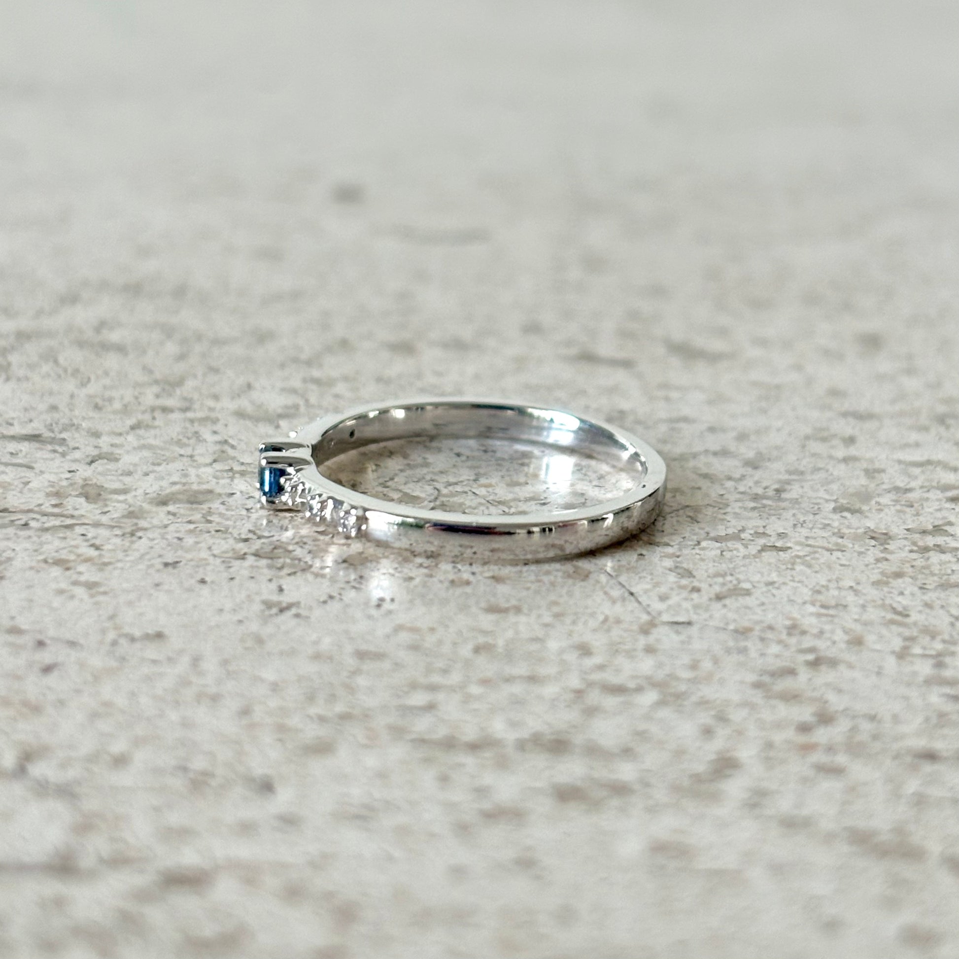 Pierres : 1 saphir 0ct10, entouré de 6 Diamants naturels pour un total de 0ct03.