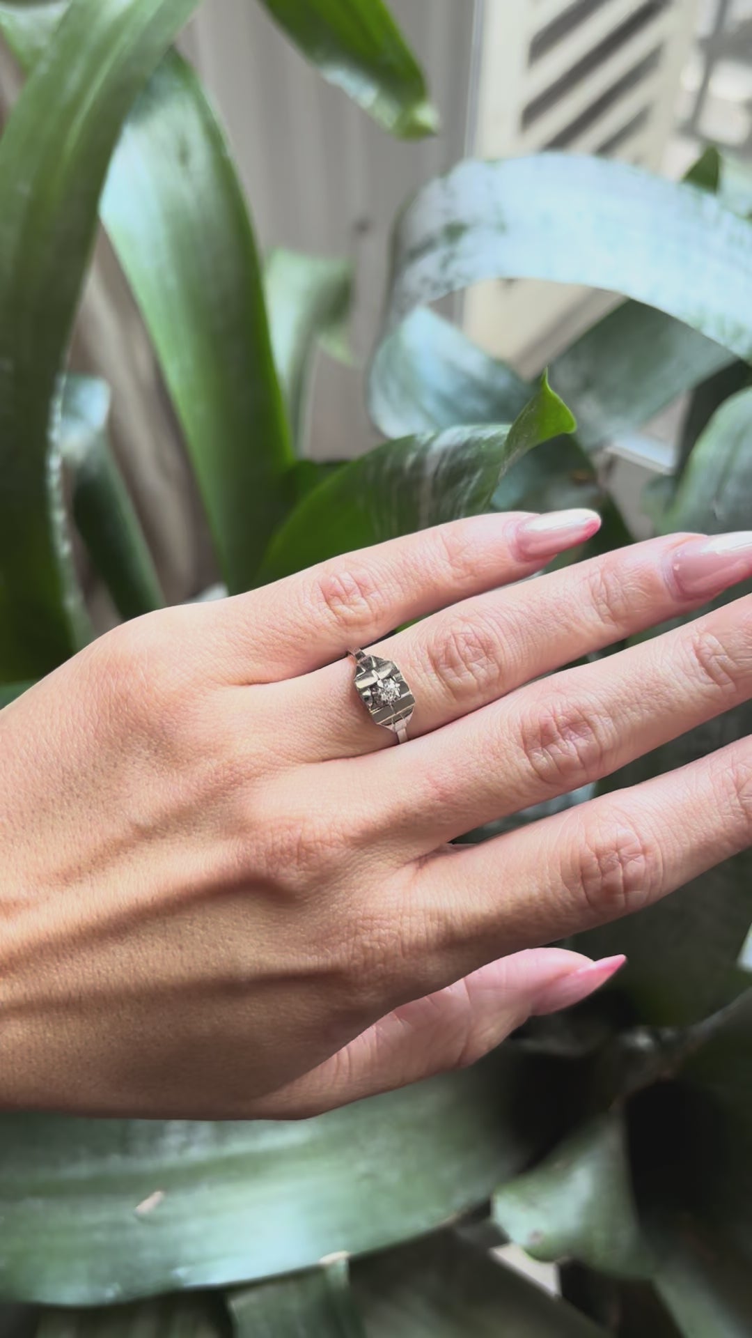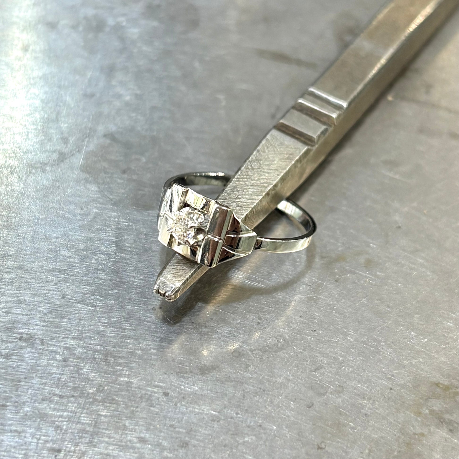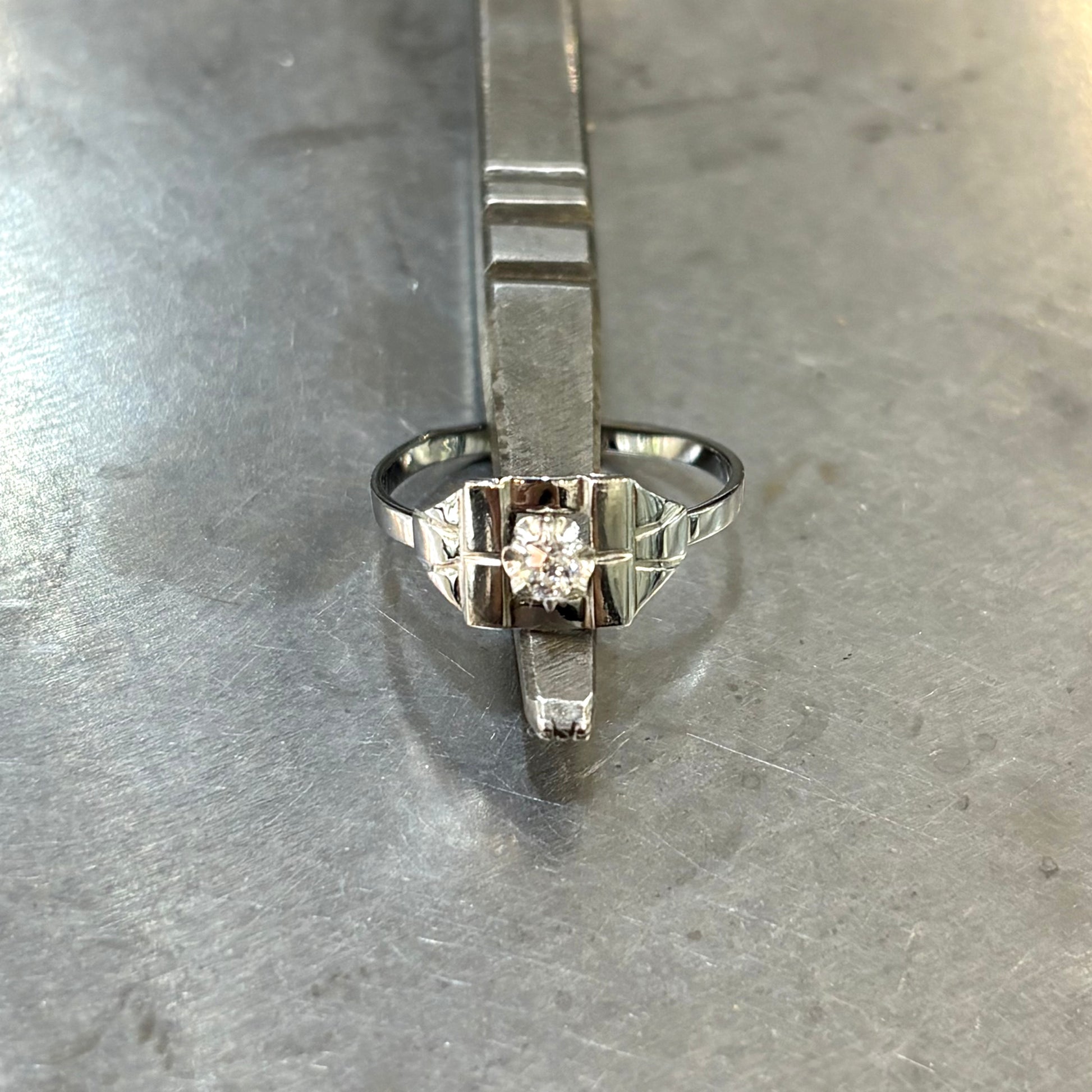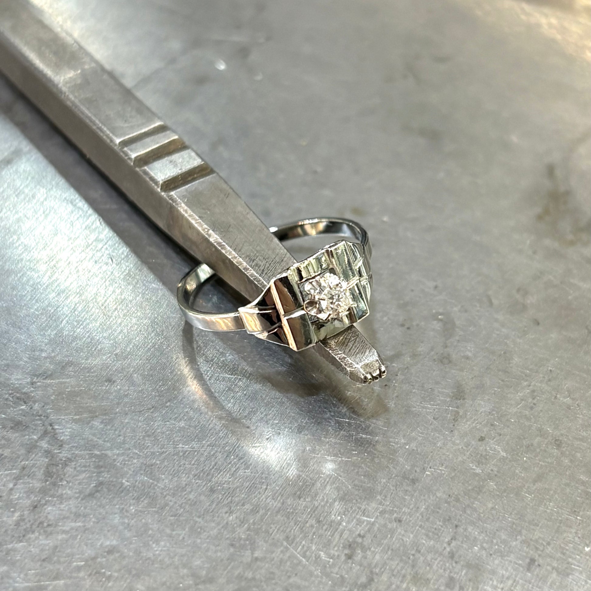 Bague Tank Vintage Art Déco - Or Blanc 750 & Diamant