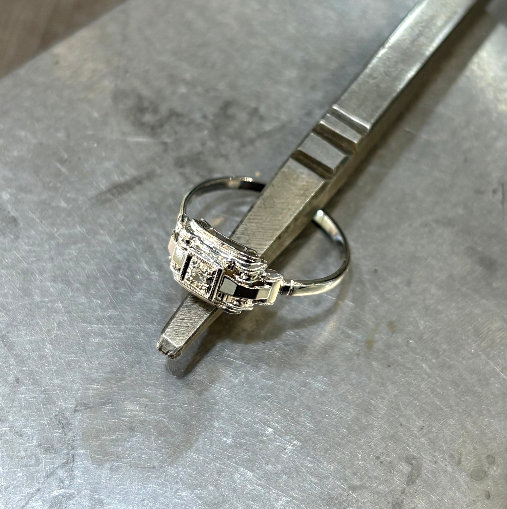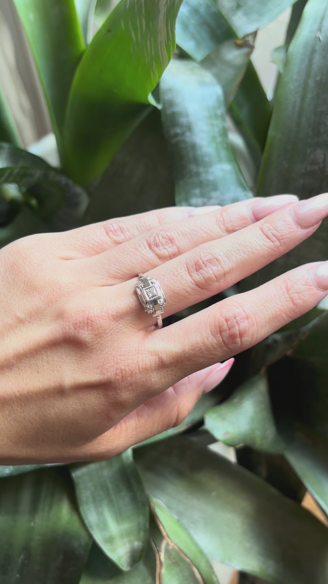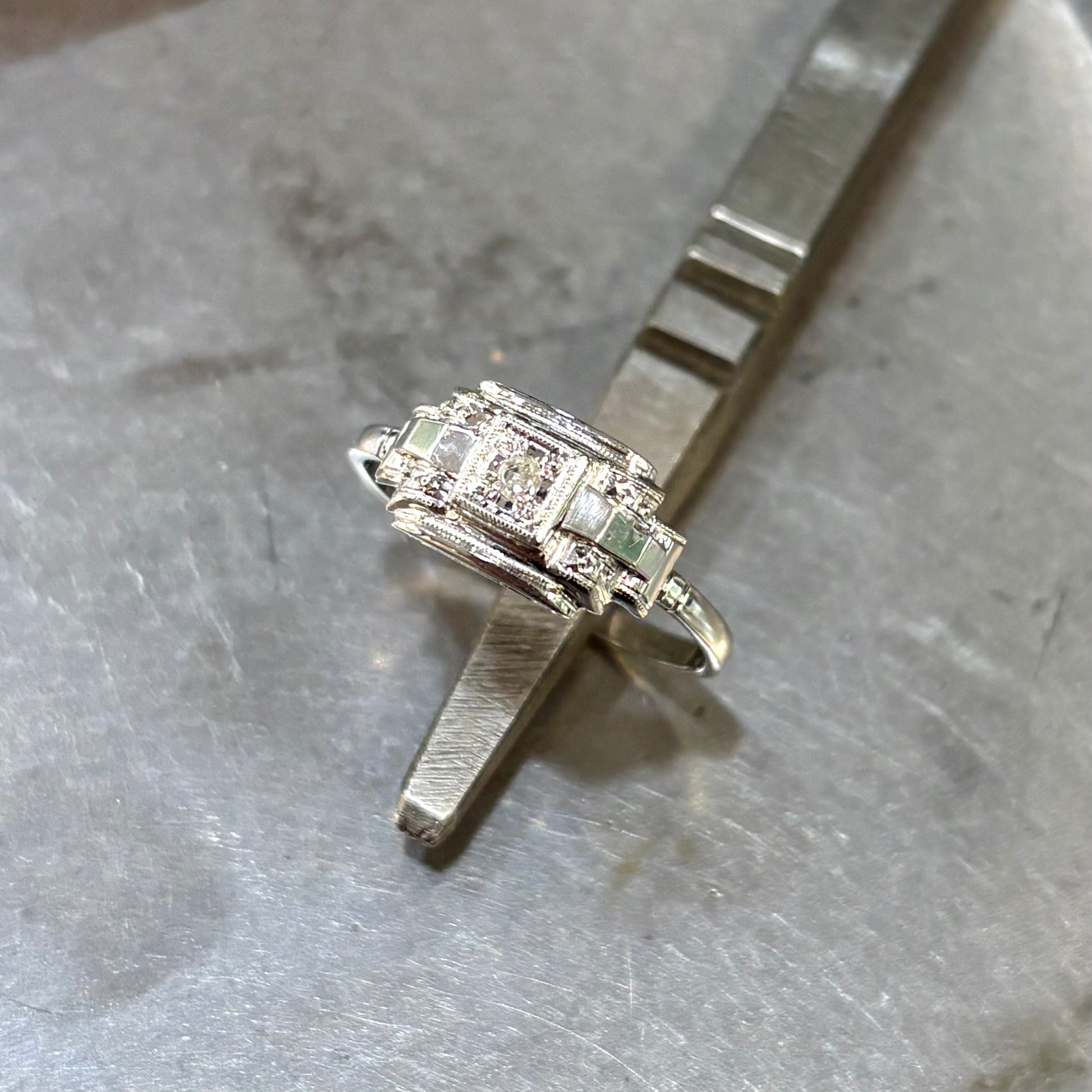 Bague Tank Vintage Art Déco - Or Blanc 750 & Diamant