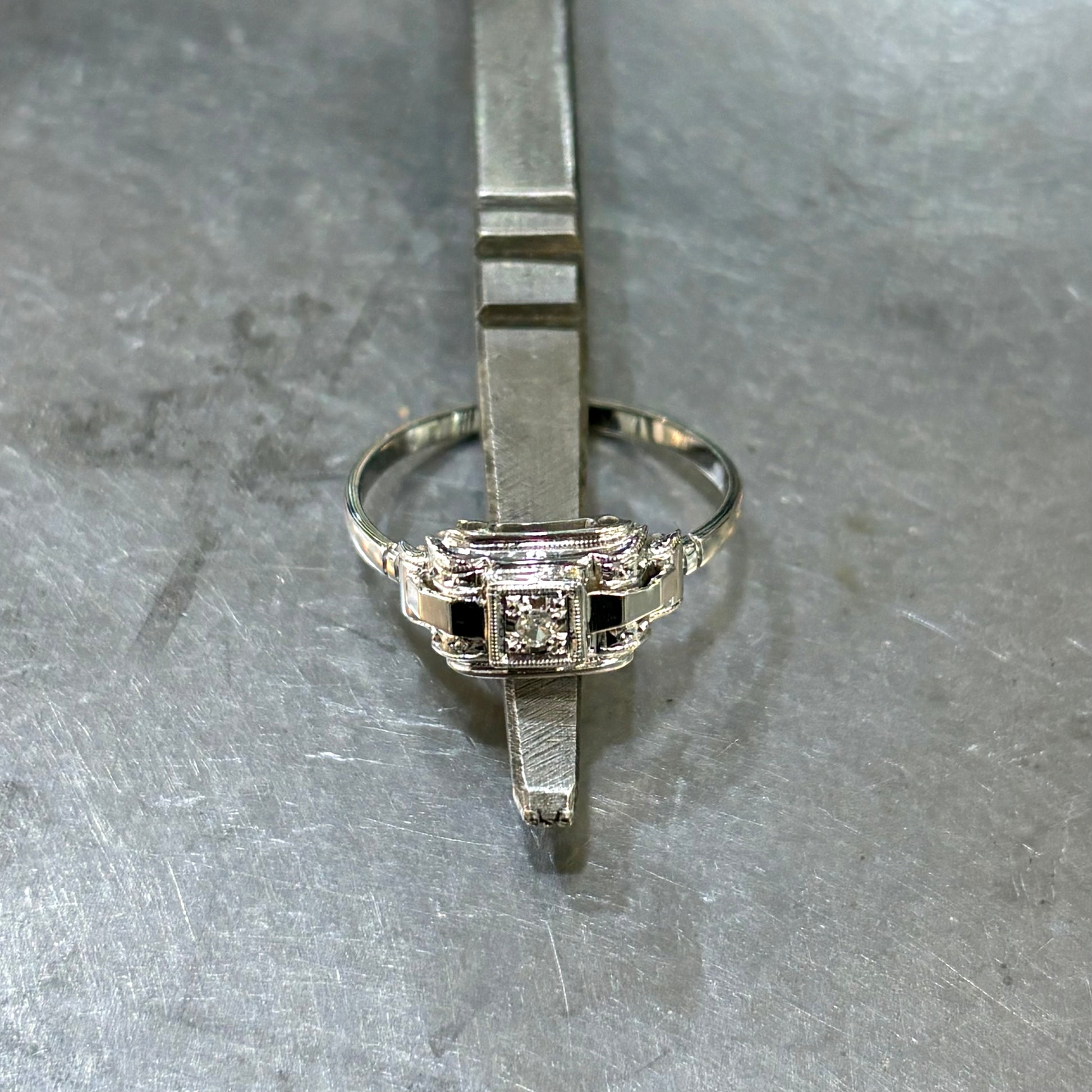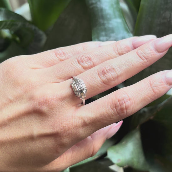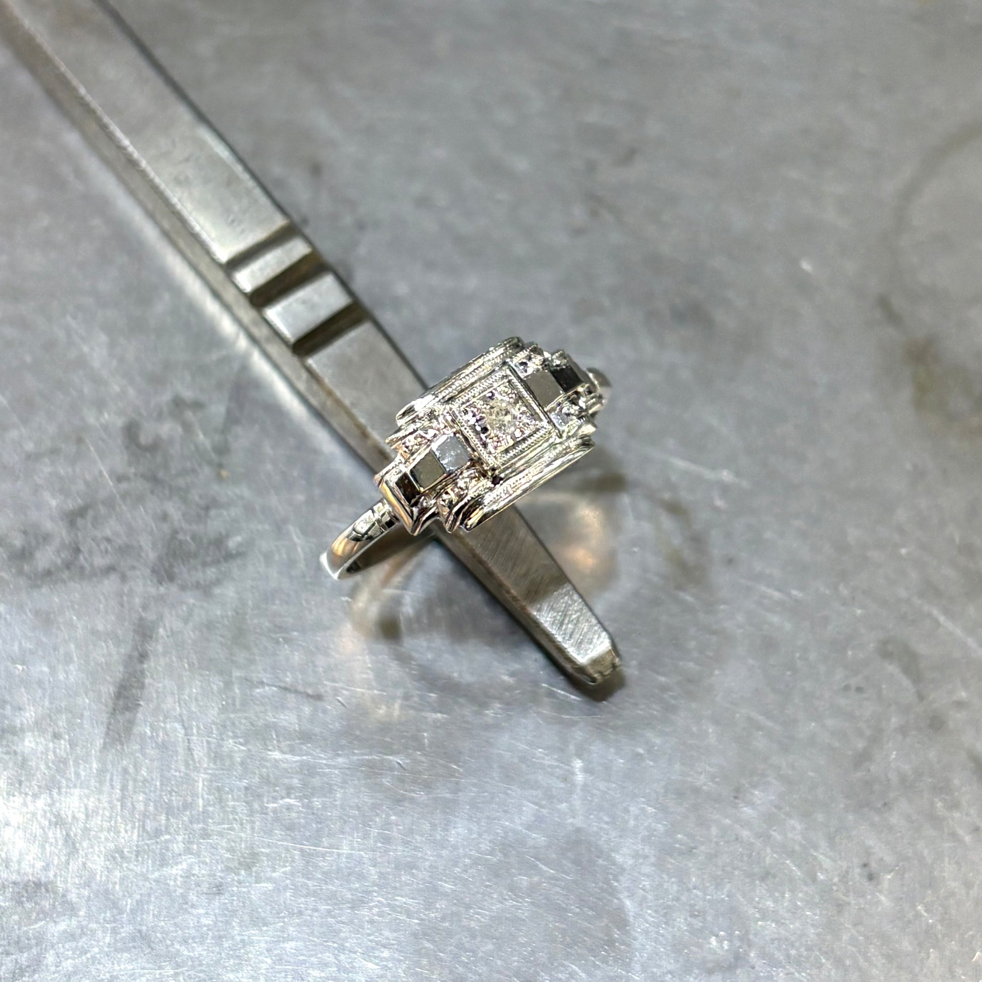 Bague Tank Vintage Art Déco - Or Blanc 750 & Diamant