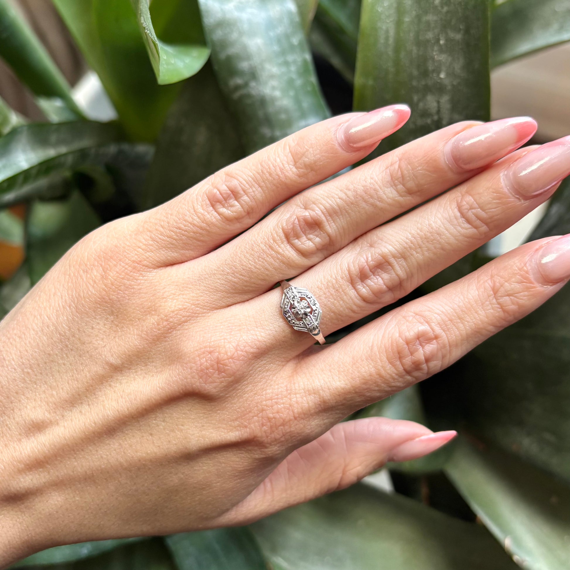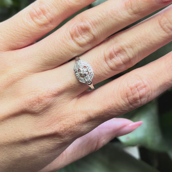 Bague Tank Vintage Art Déco - Or Blanc 750 & Diamant