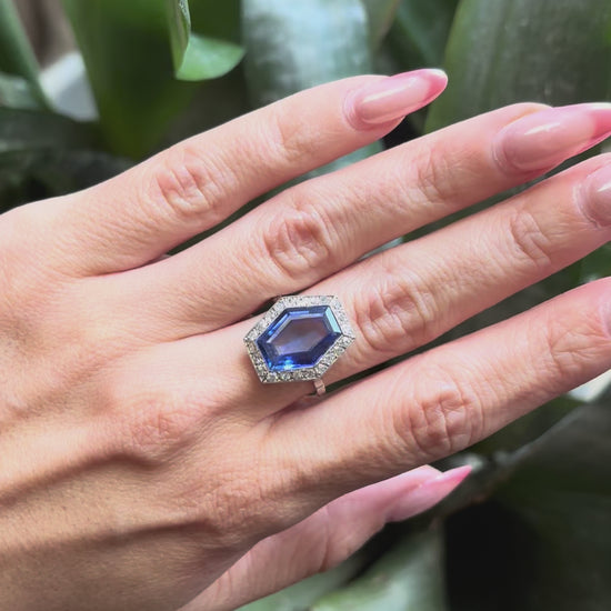 Bague Vintage Art Déco - Platine 950 Diamants & Saphir de Verneuil