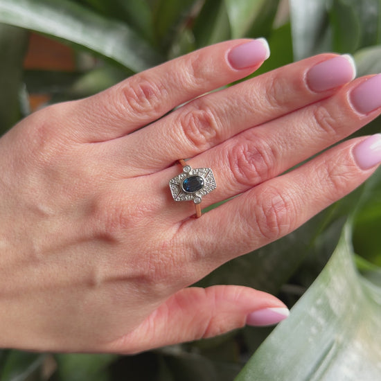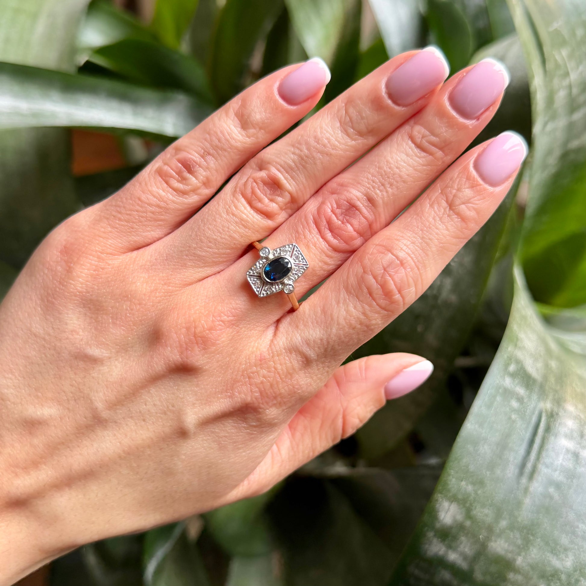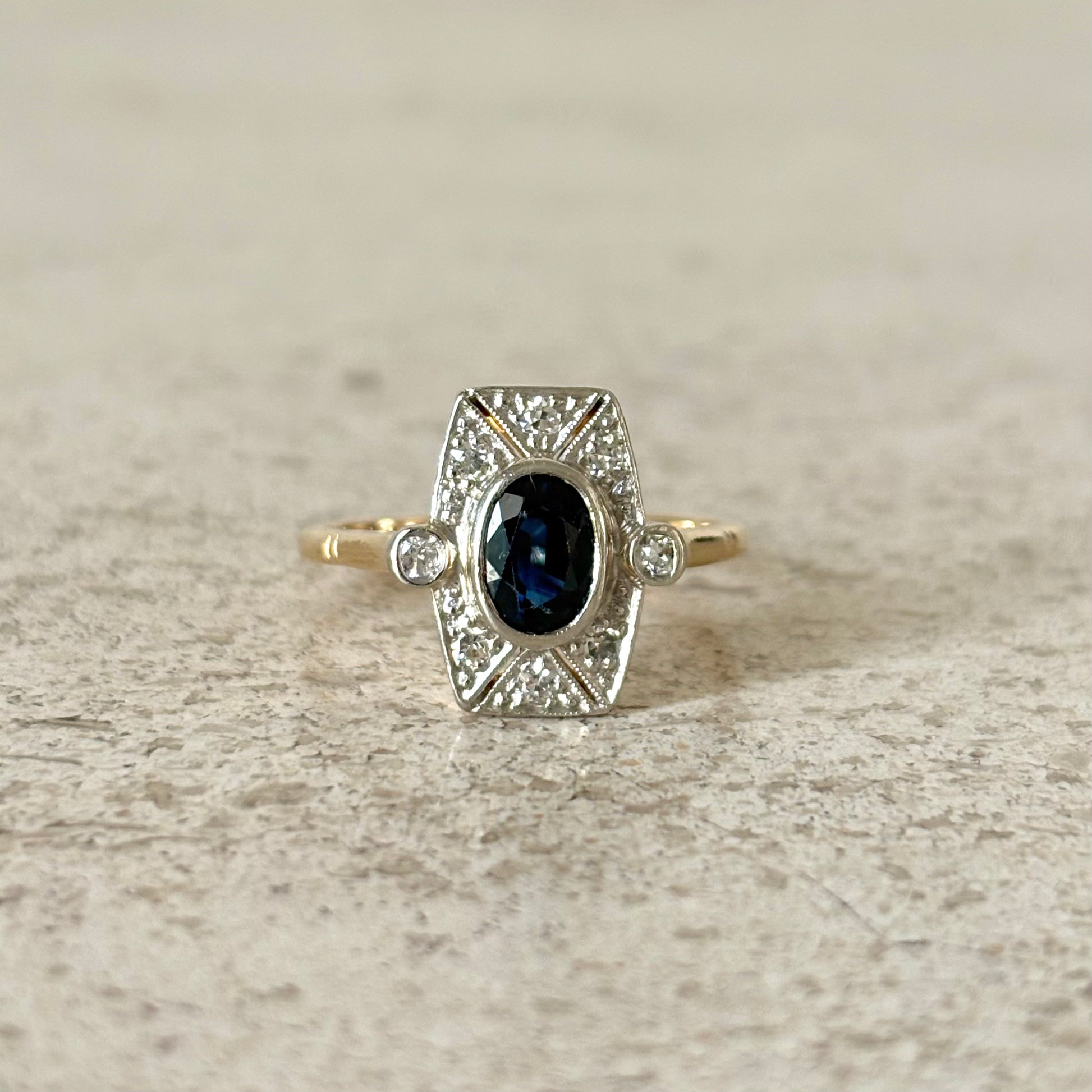 Bague Vintage - Or Jaune/Blanc 750 Saphir & Diamants