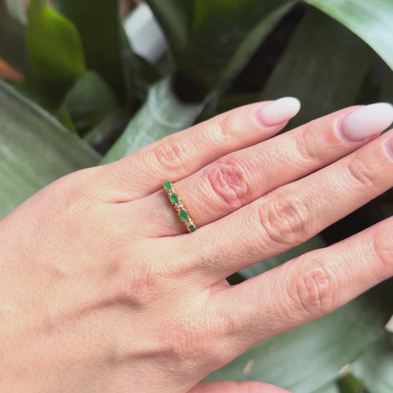 Bague Alliance - Or Jaune 750 Émeraudes & Diamants