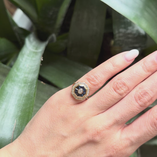 Bague Art Déco - Or Jaune 750 Saphirs & Diamants