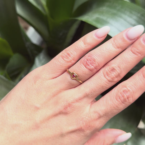 Bague Coeur - Or Jaune 750 & Rubis