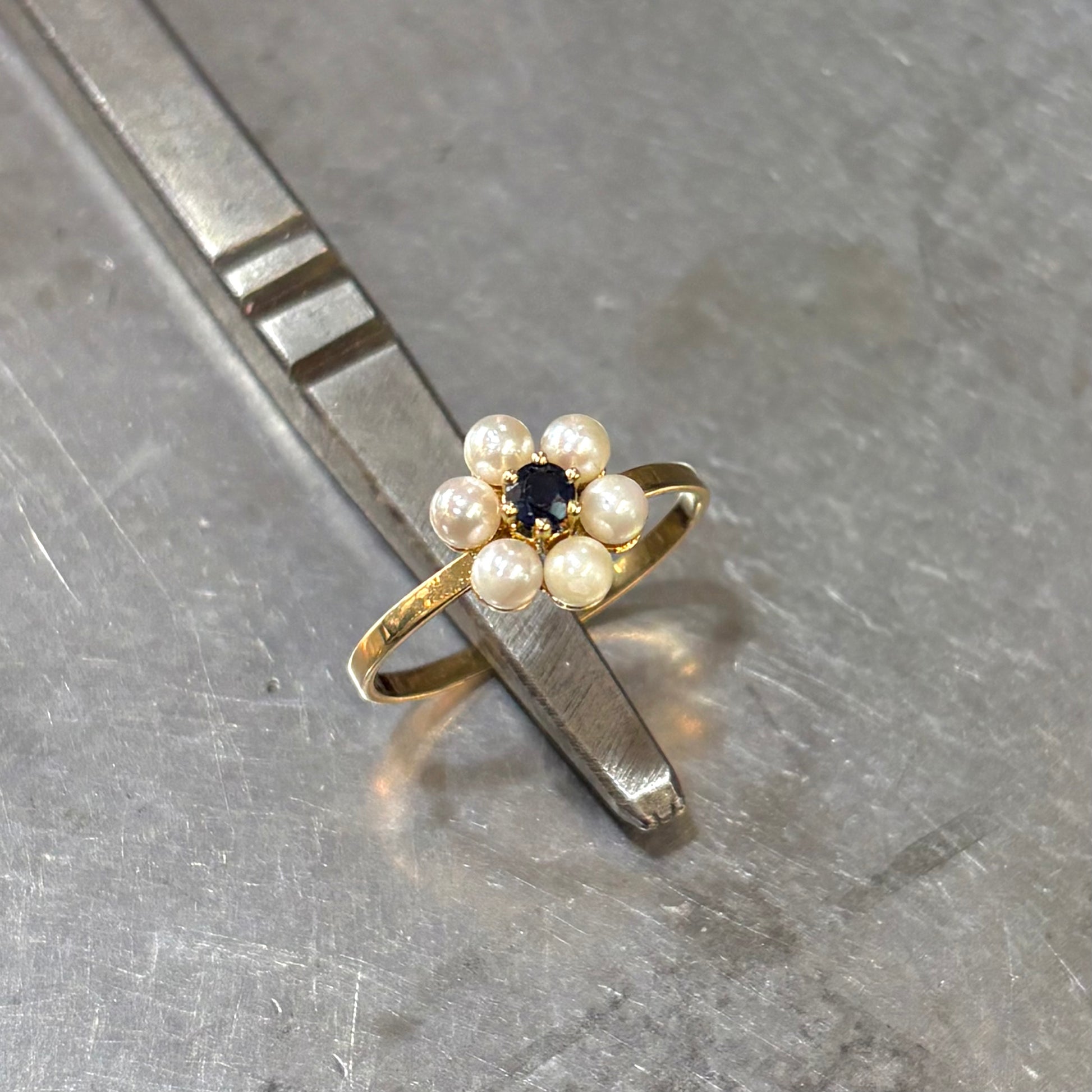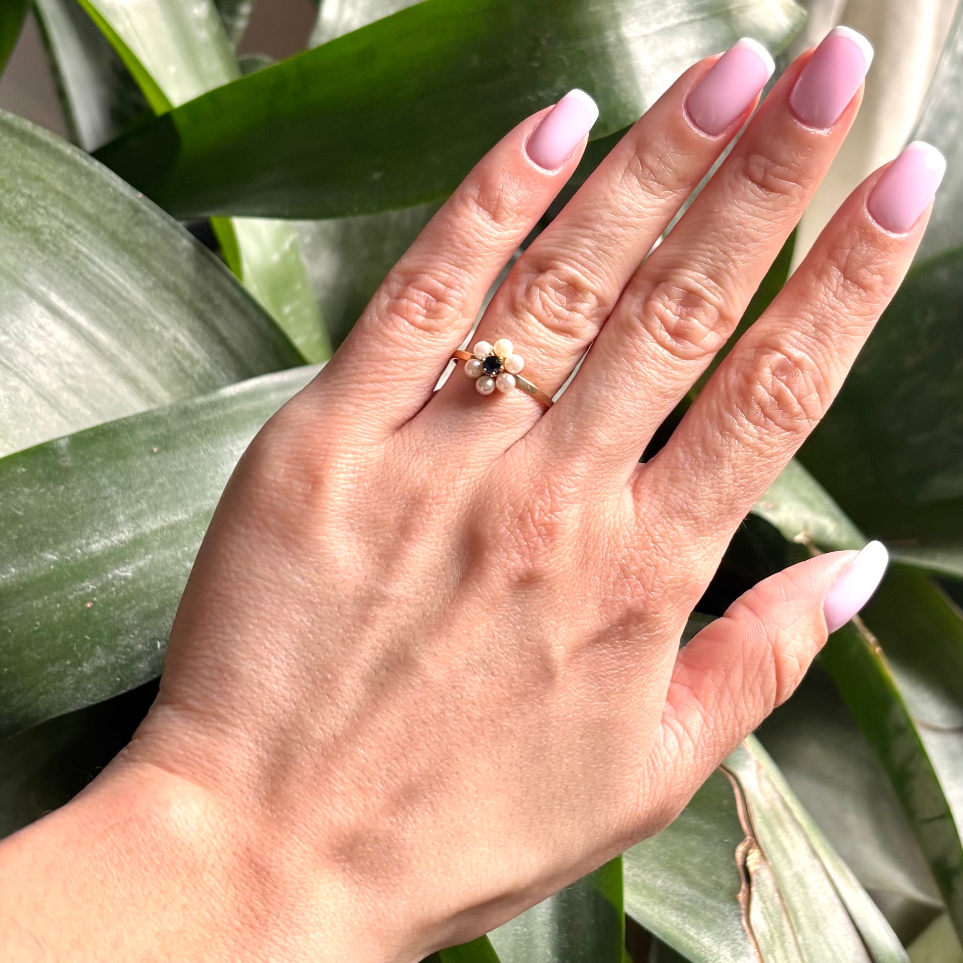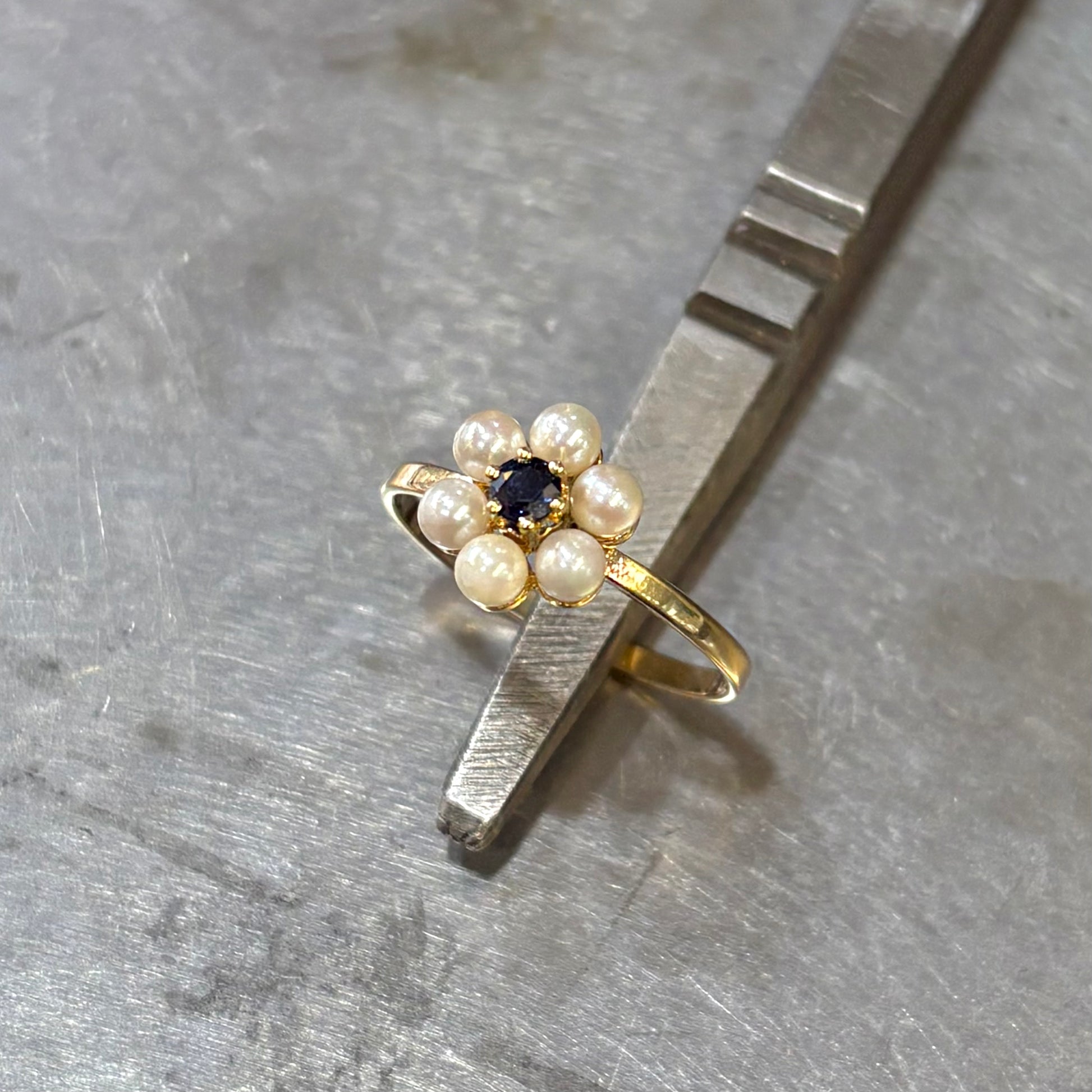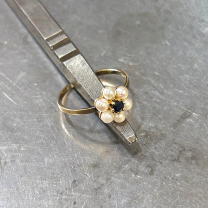 Bague Floral - Or Jaune 750 Perle & Saphir