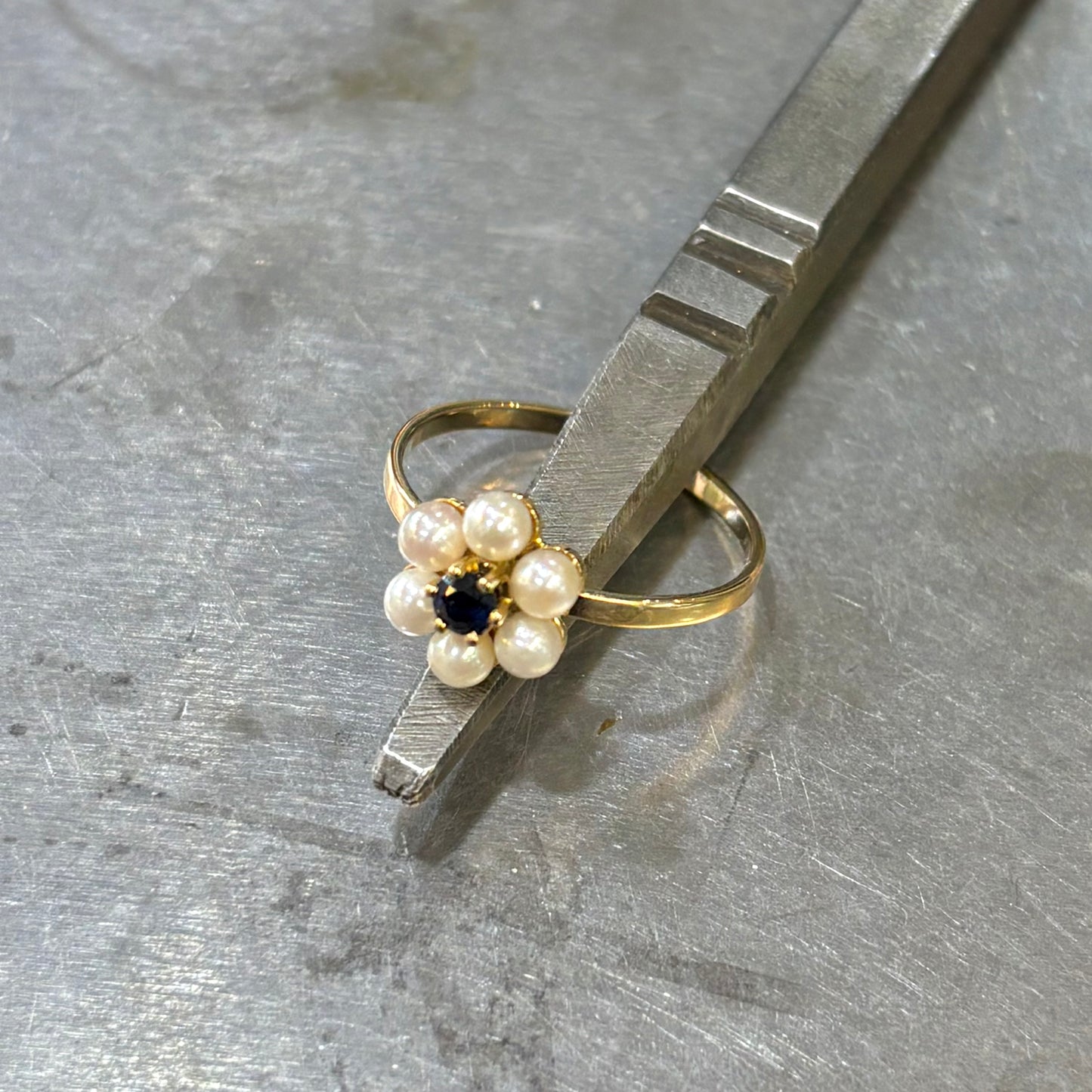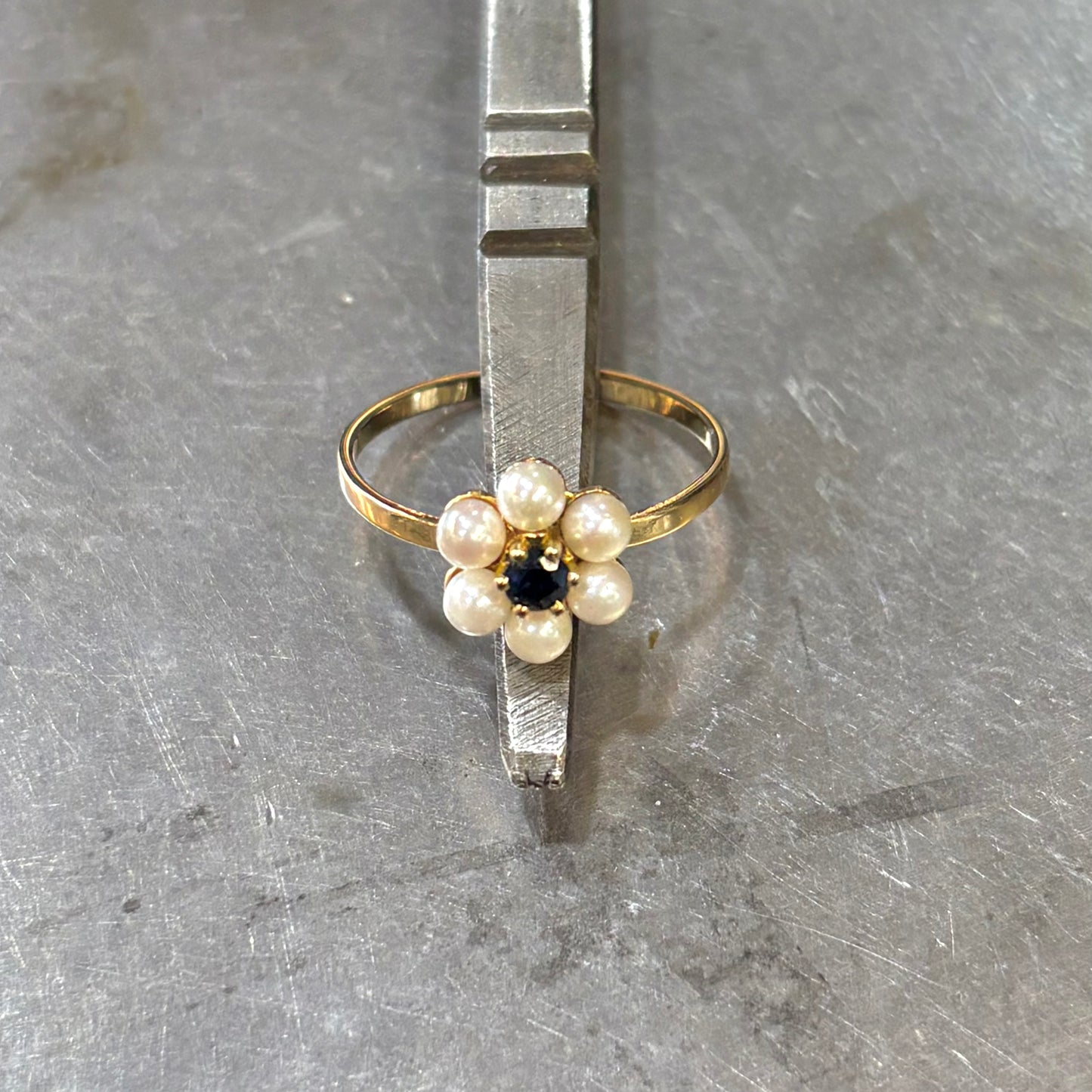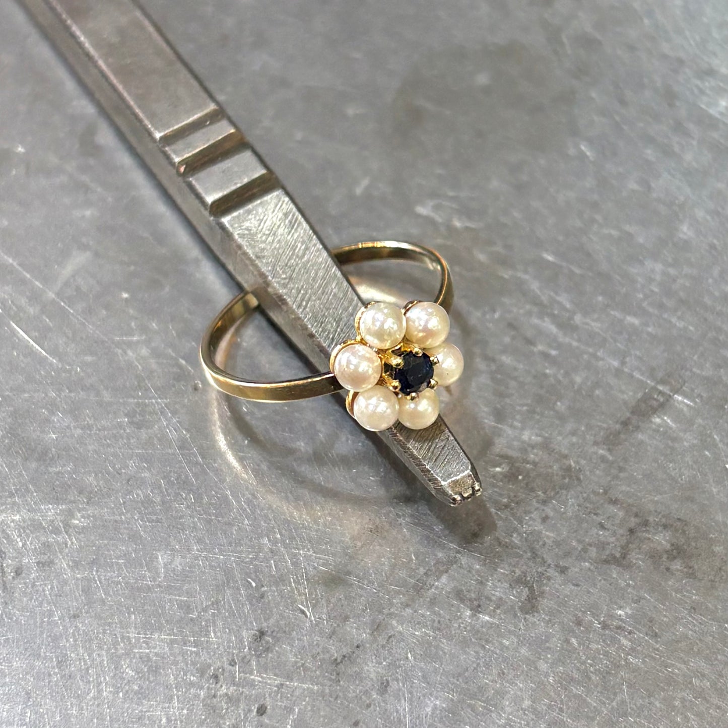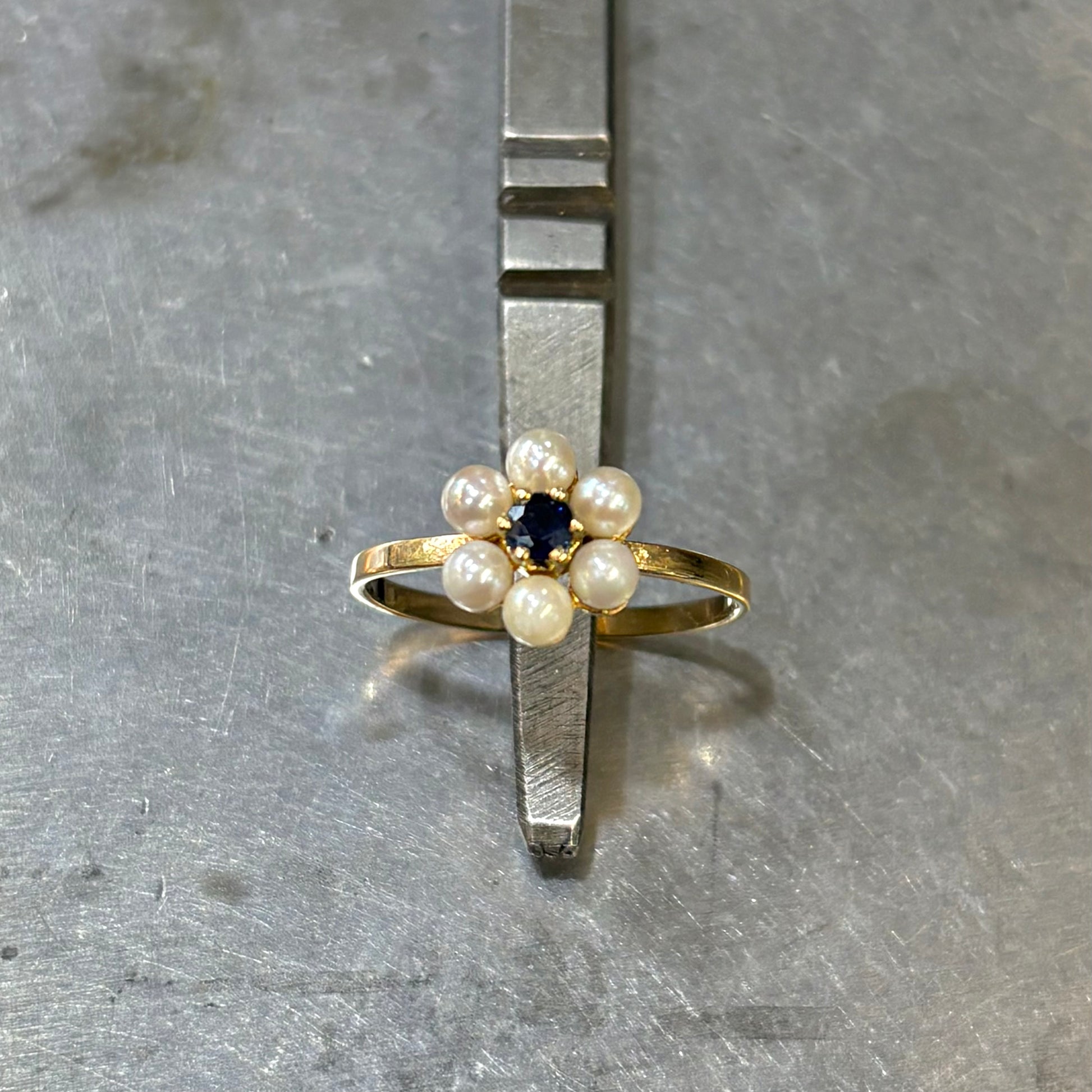Bague Floral - Or Jaune 750 Perle & Saphir