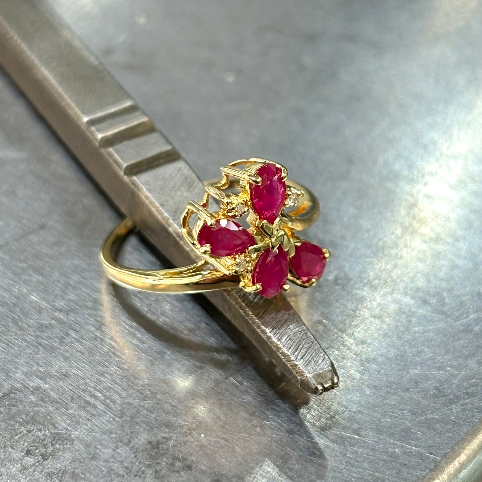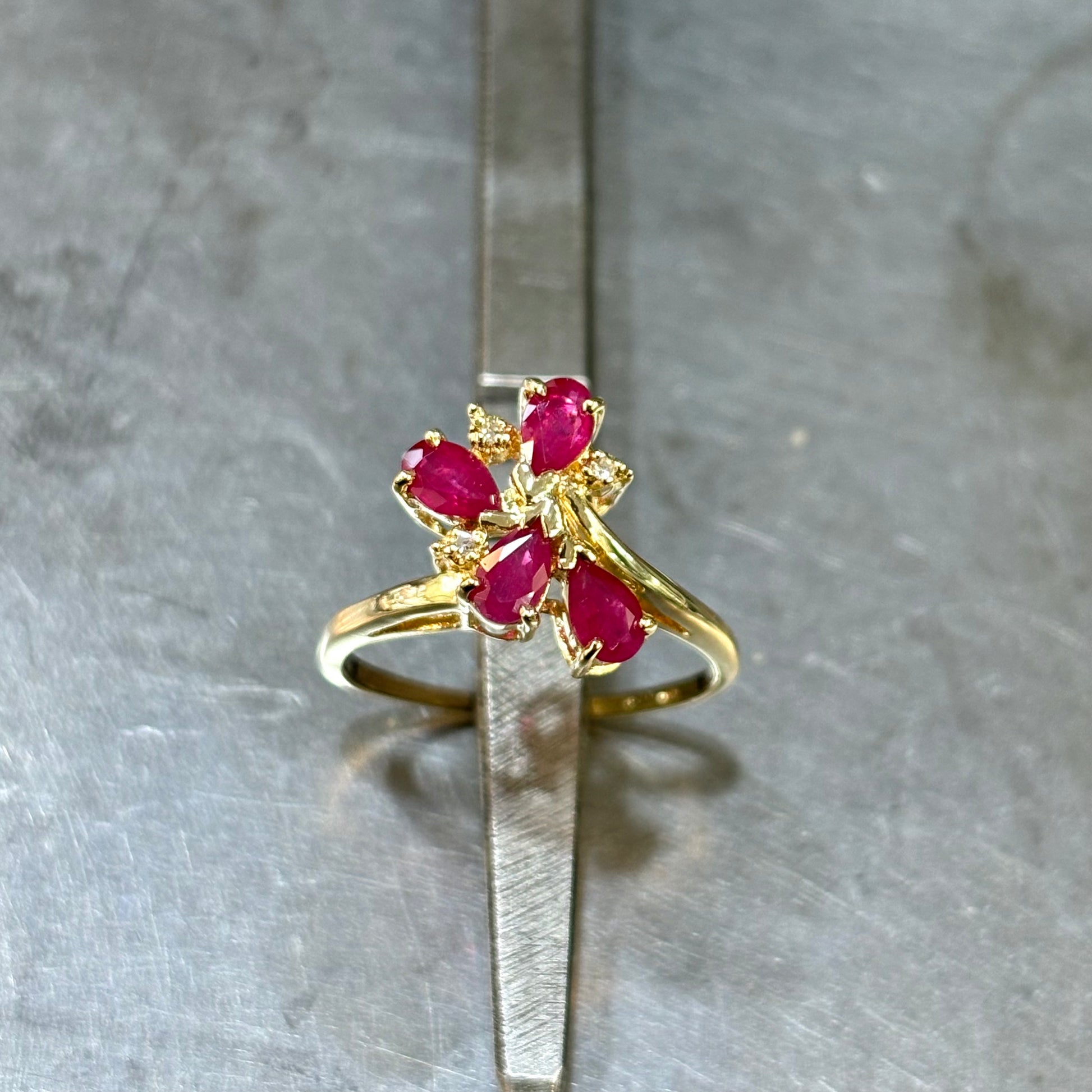 Bague Florale - Or Jaune 750 Rubis & Diamants