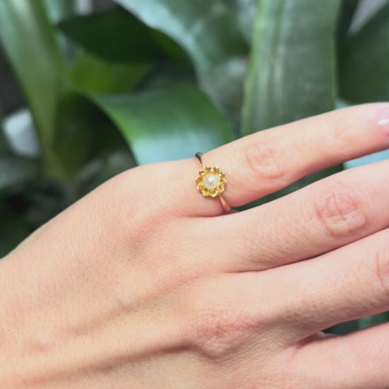 Bague Floral Vintage - Or Jaune 750 & Perle Naturelle