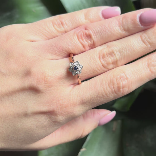 Bague Floral Vintage - Or Rose 750 Saphir & Diamants