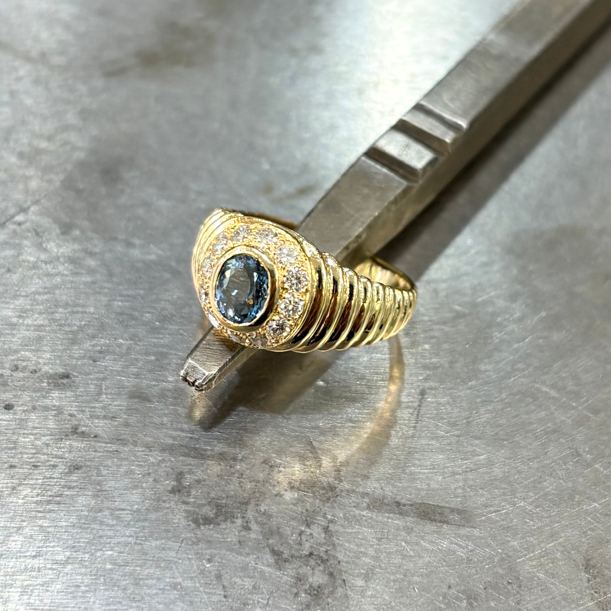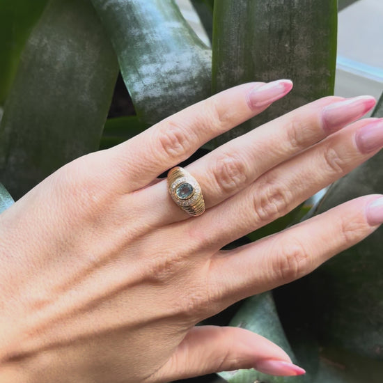 Bague Jonc - Or Jaune 750 Aigue-Marine & Diamants