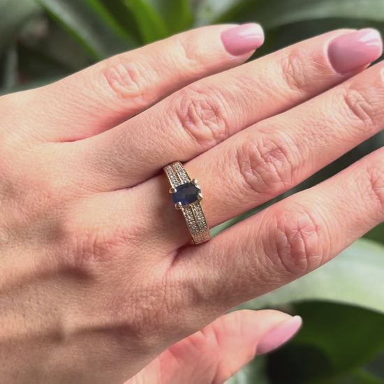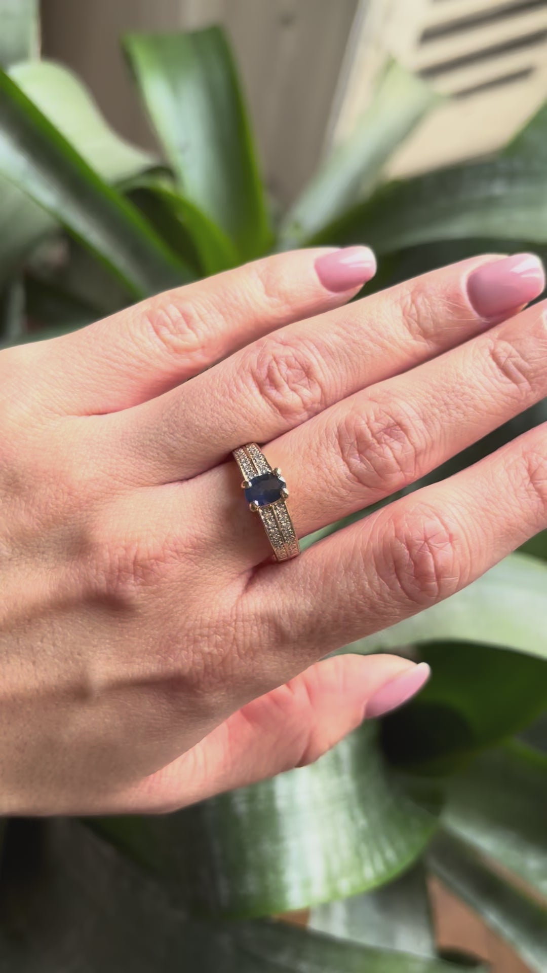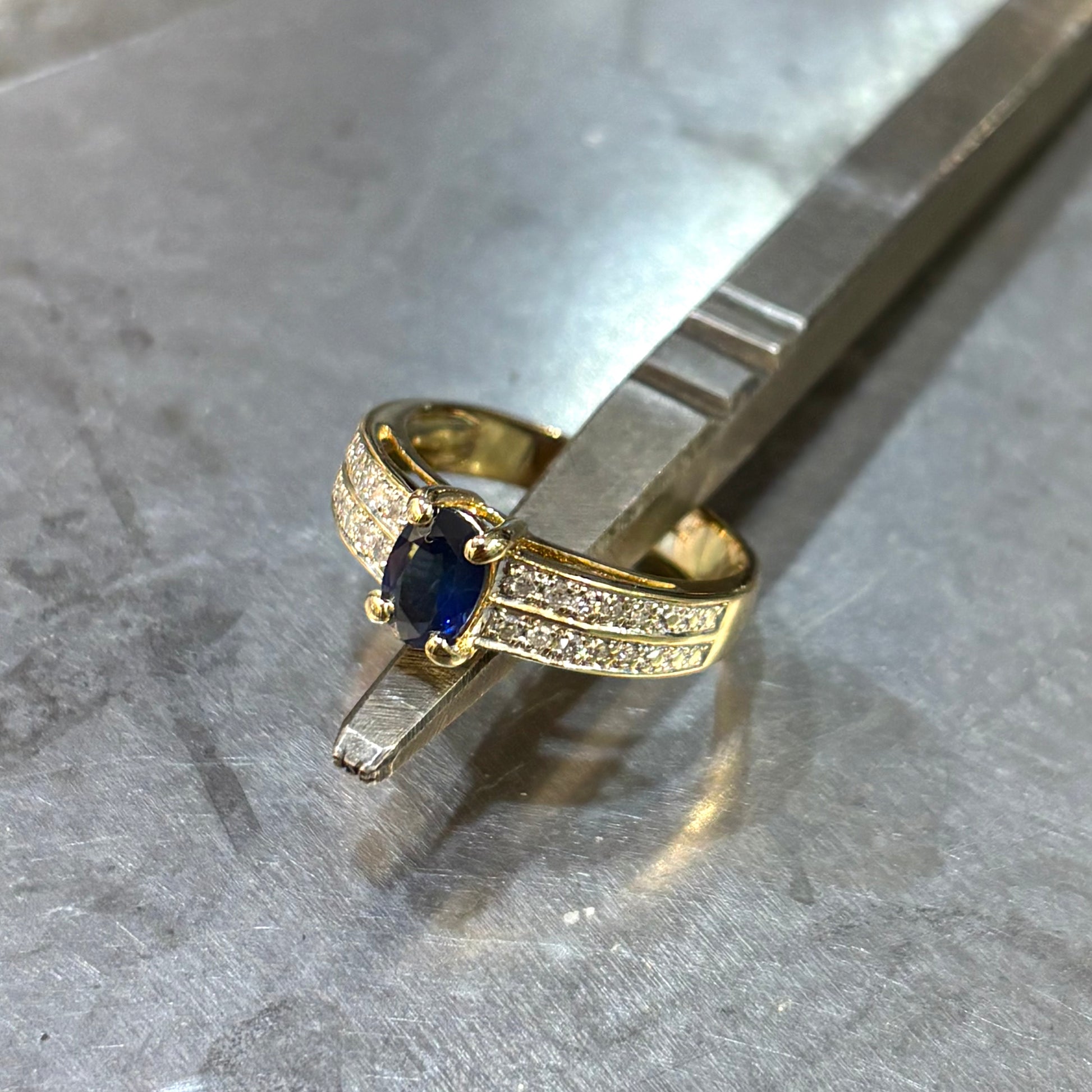 Bague Jonc - Or Jaune 750 Saphir & Diamants