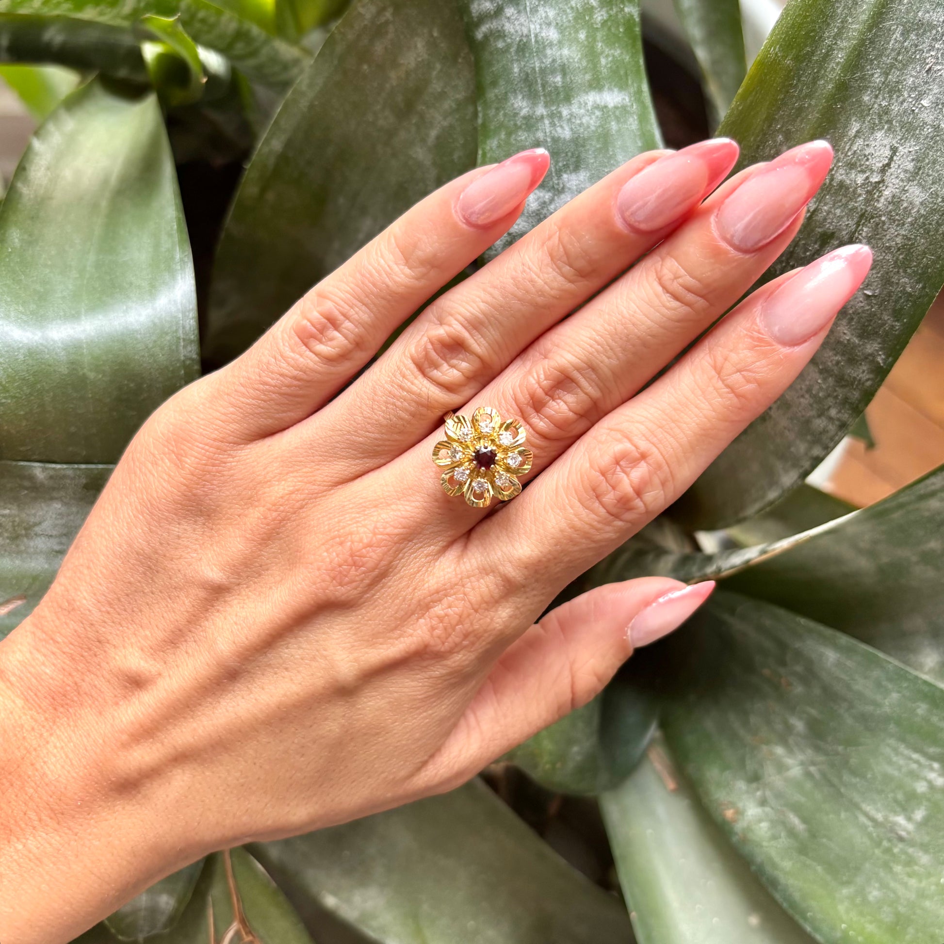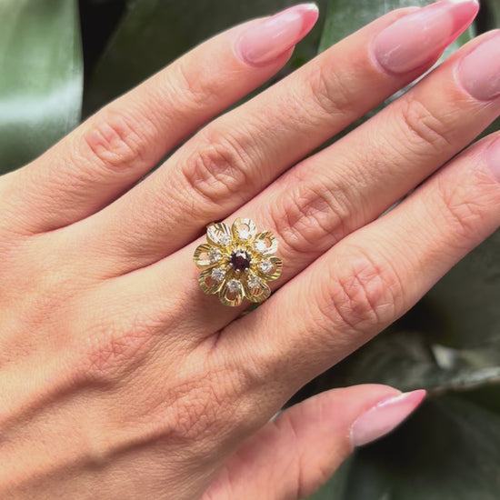 Bague Marguerite - Or Jaune 750 Diamants & Grenat