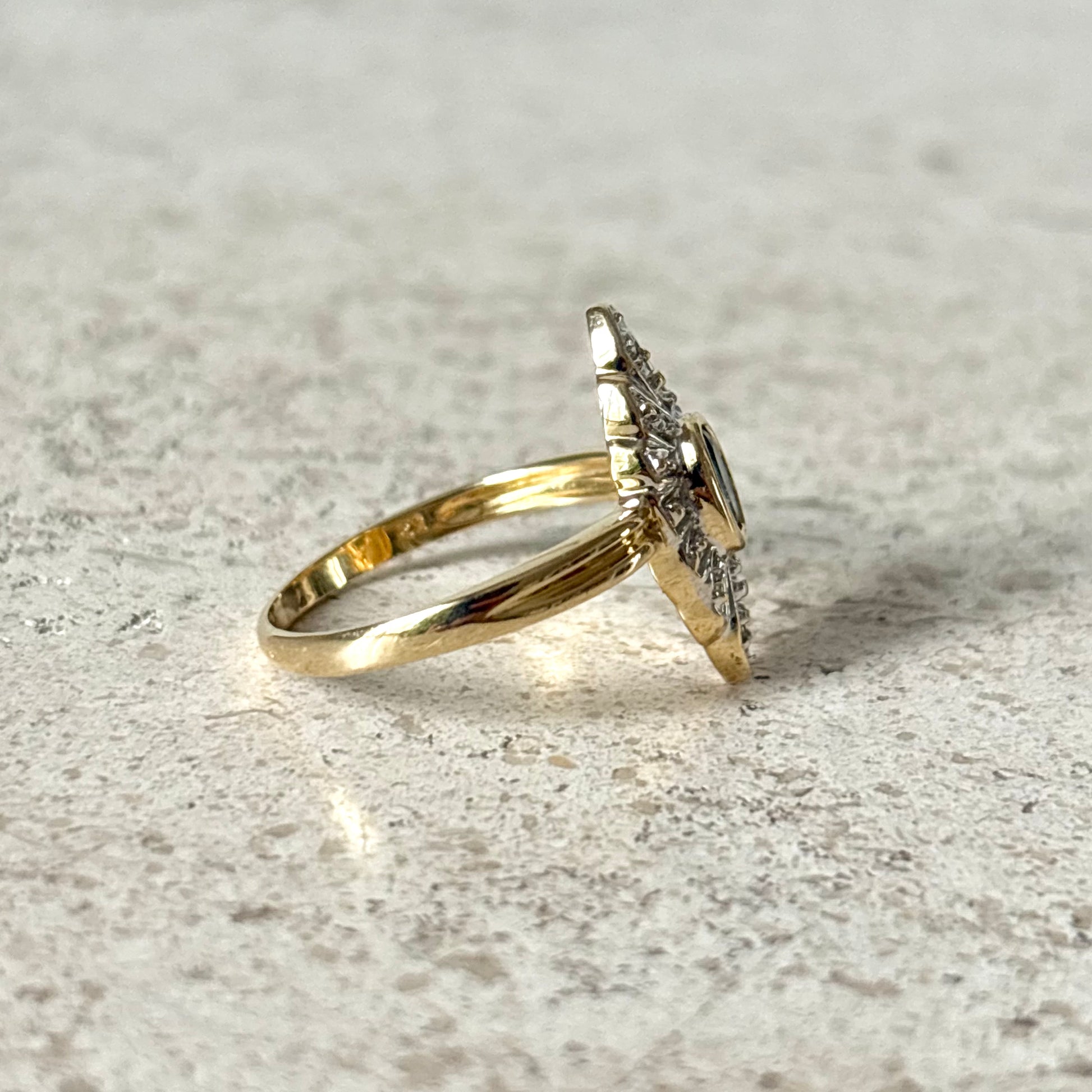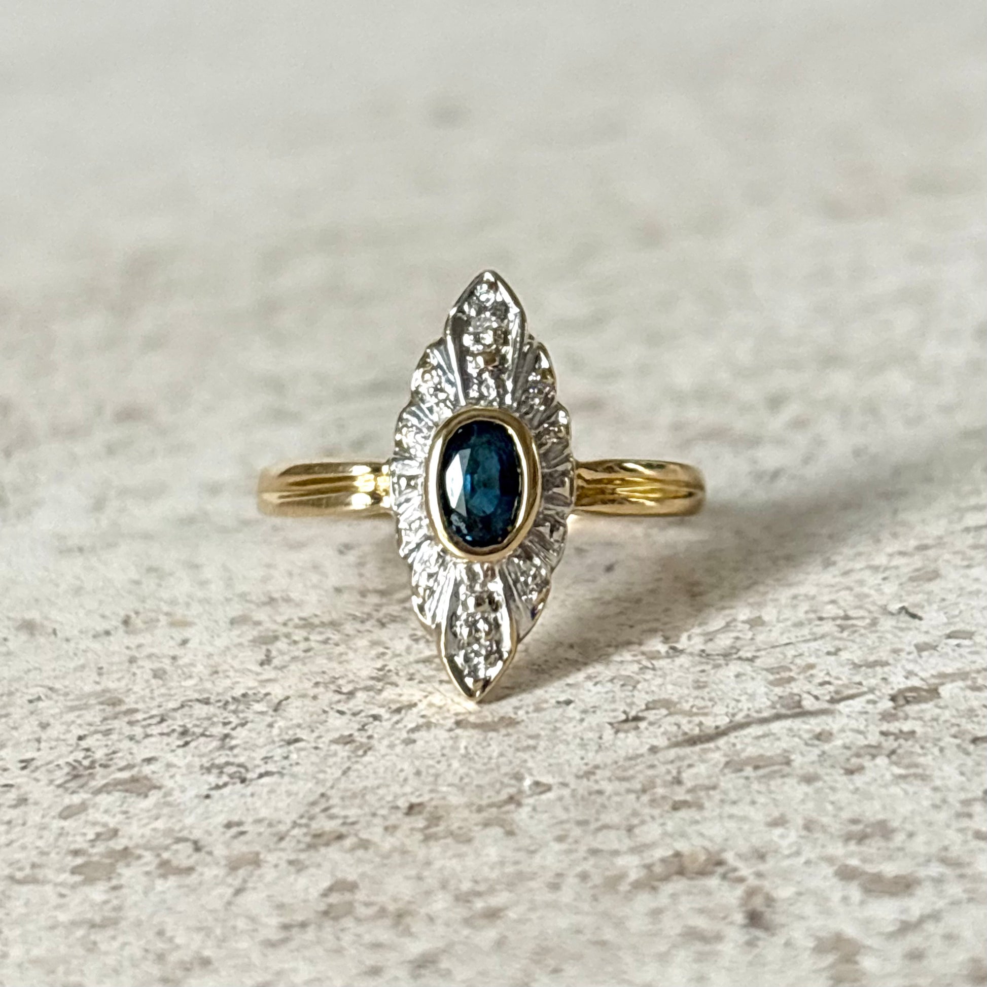 Bague Marquise Vintage - Or Jaune 750 Saphir & Diamants