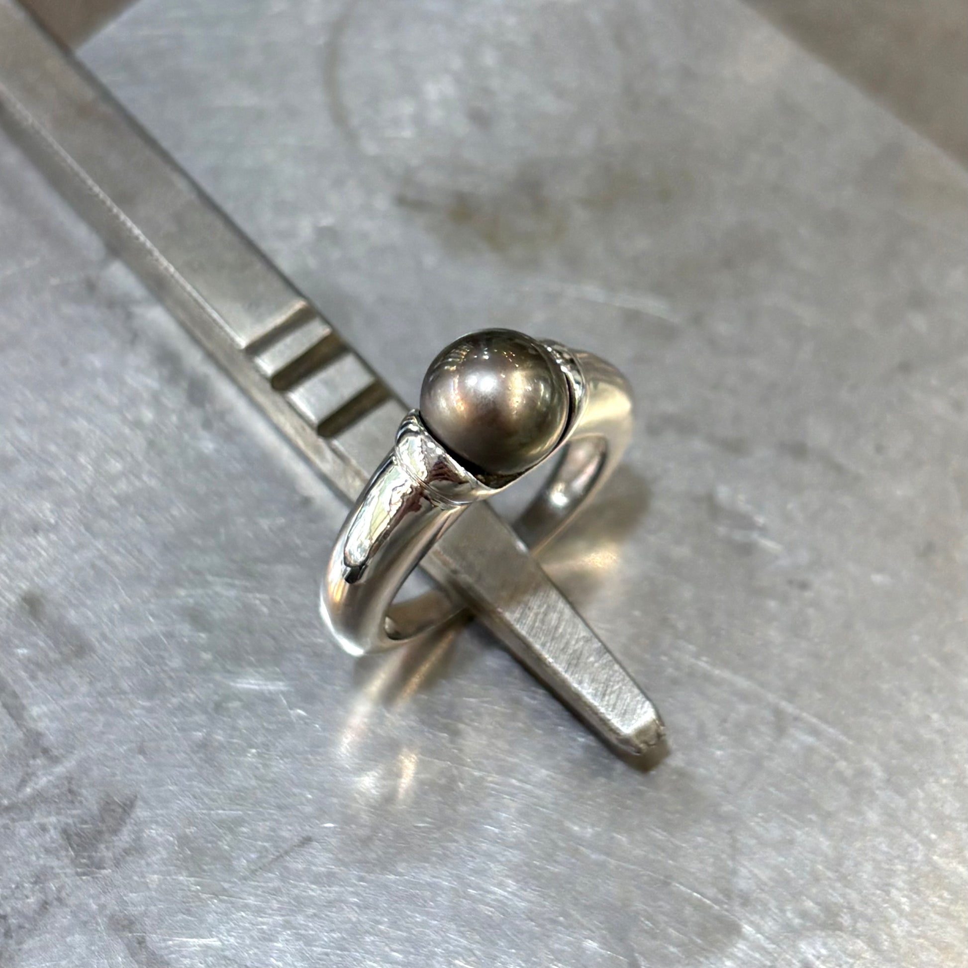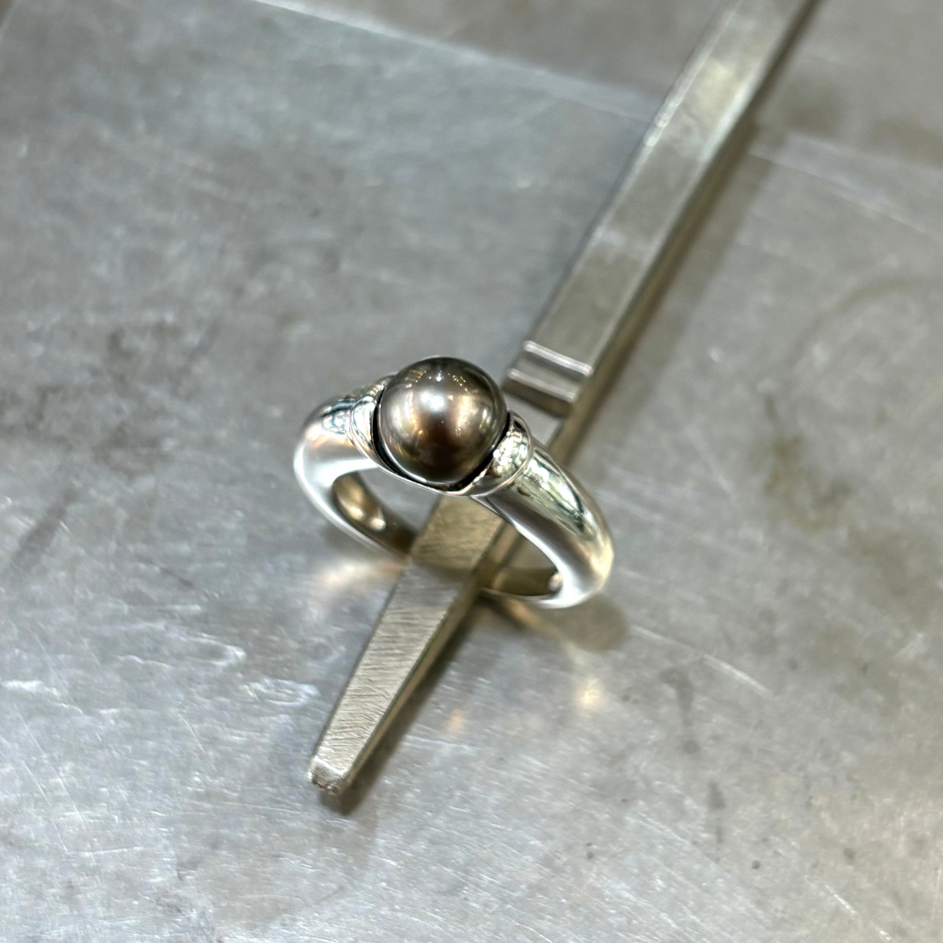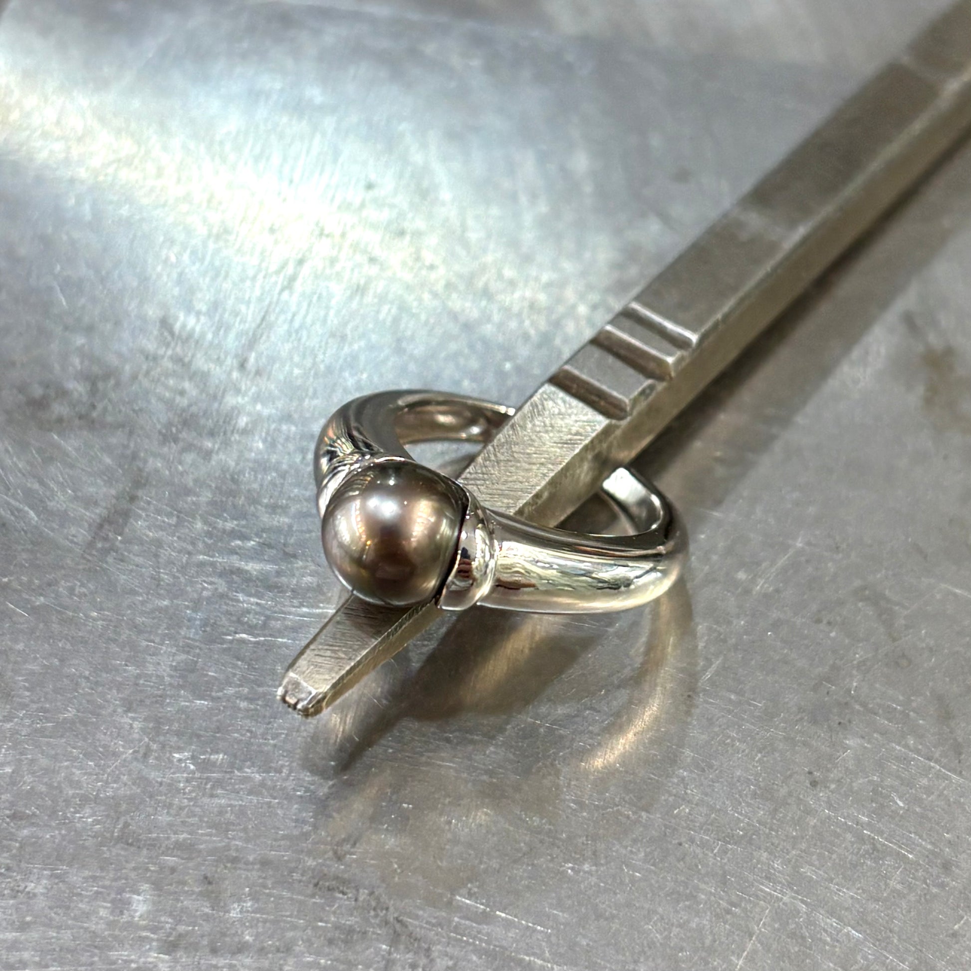 Bague Perle - Or Blanc 750 & Perle Naturelle de Tahiti