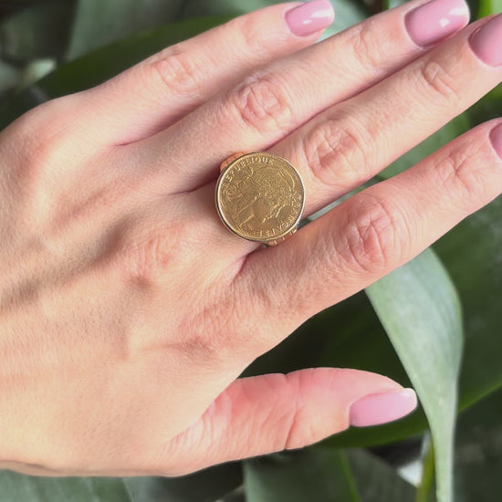 Bague Pièce - Or Jaune 750 & Pièce Or 10 Francs Marianne Coq