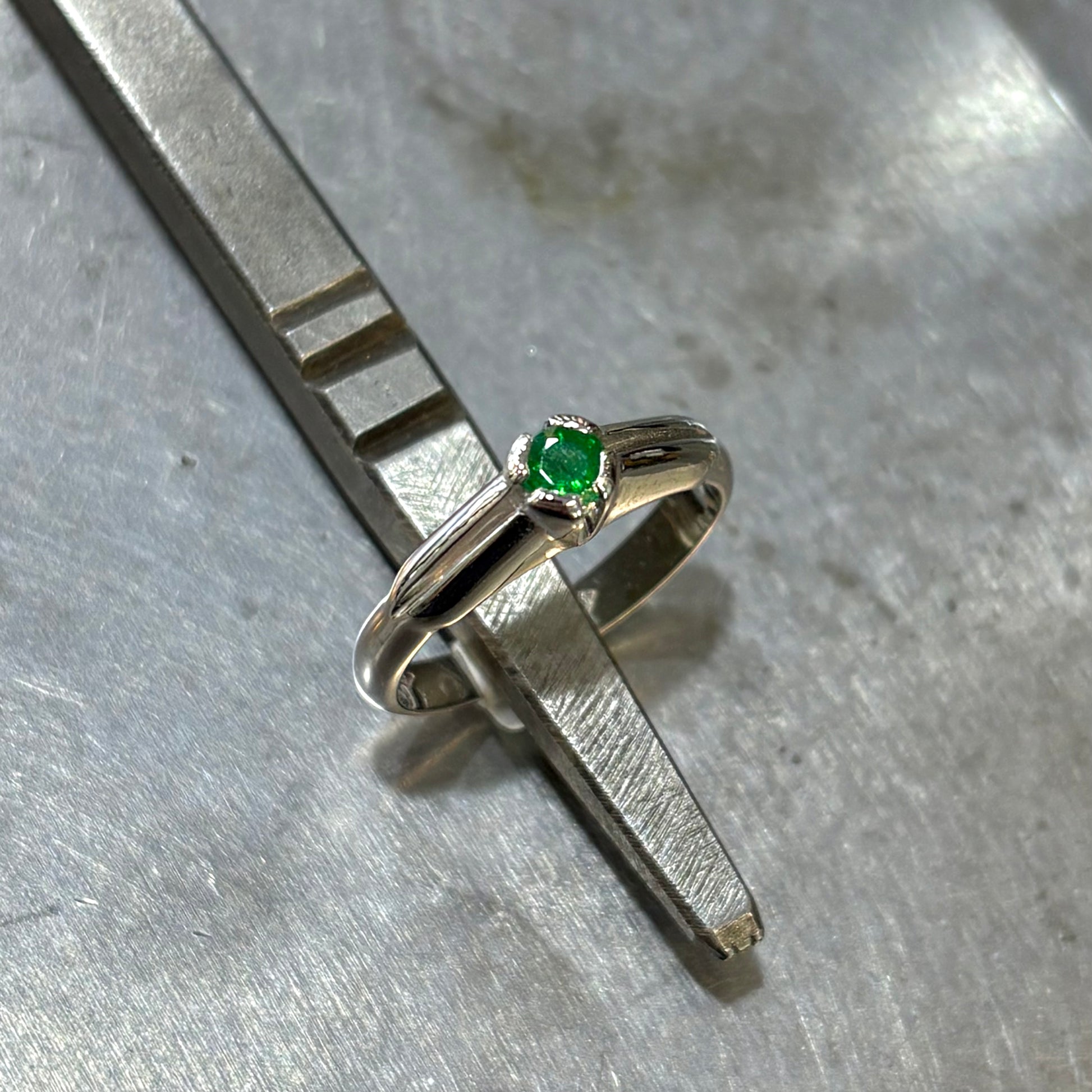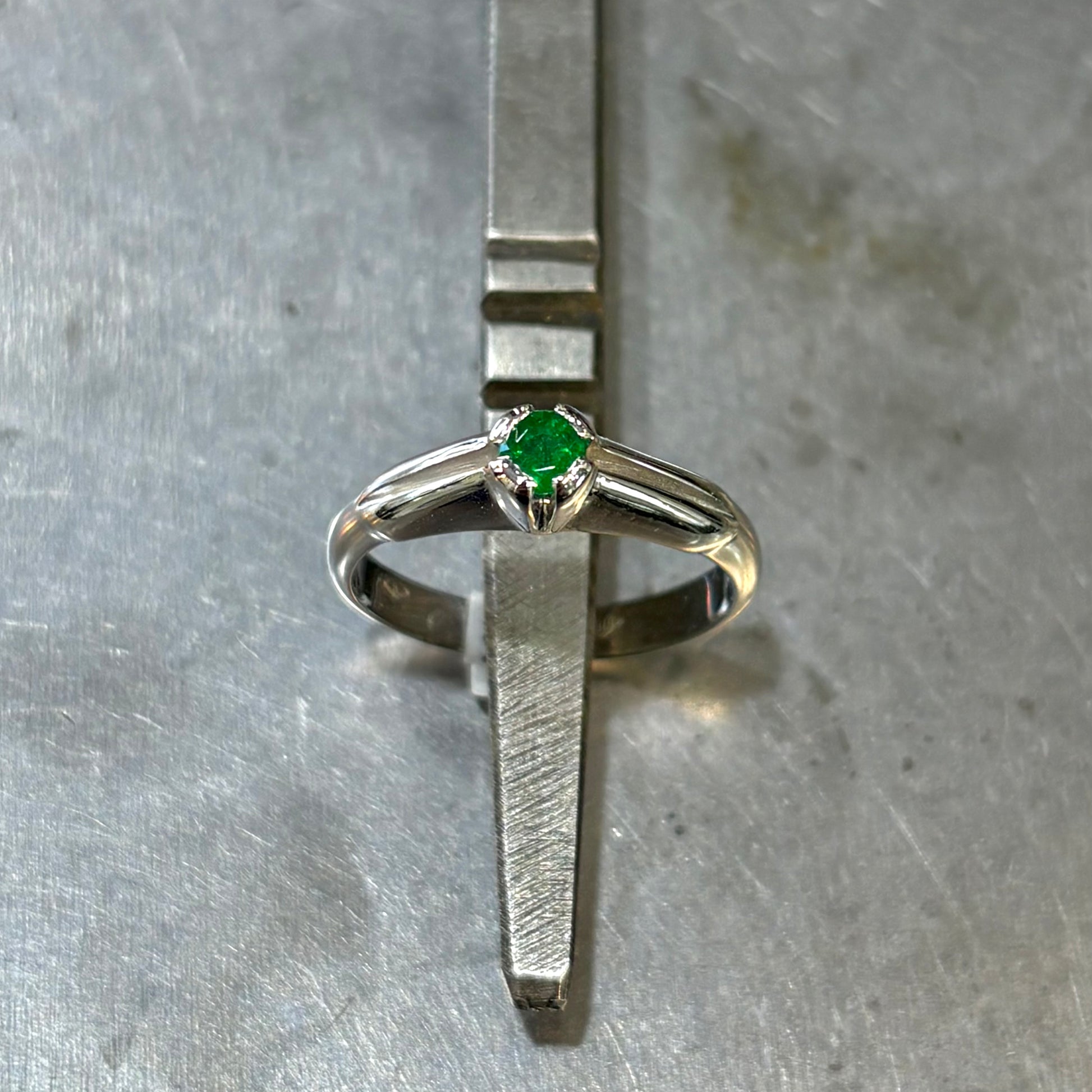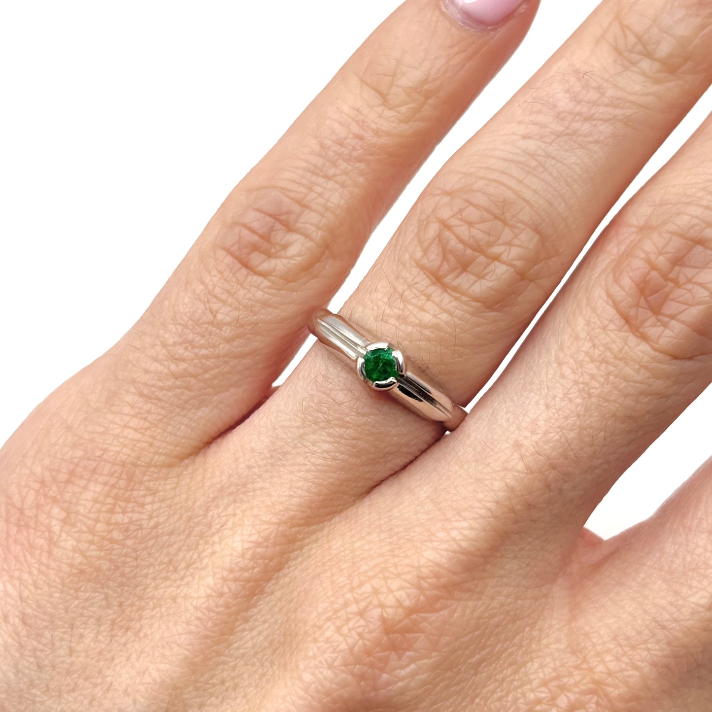 Bague Solitaire - Or Blanc 750 & Émeraude