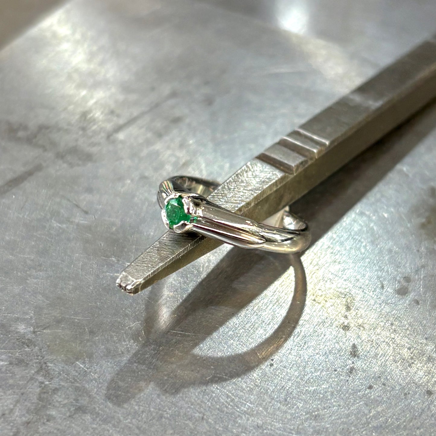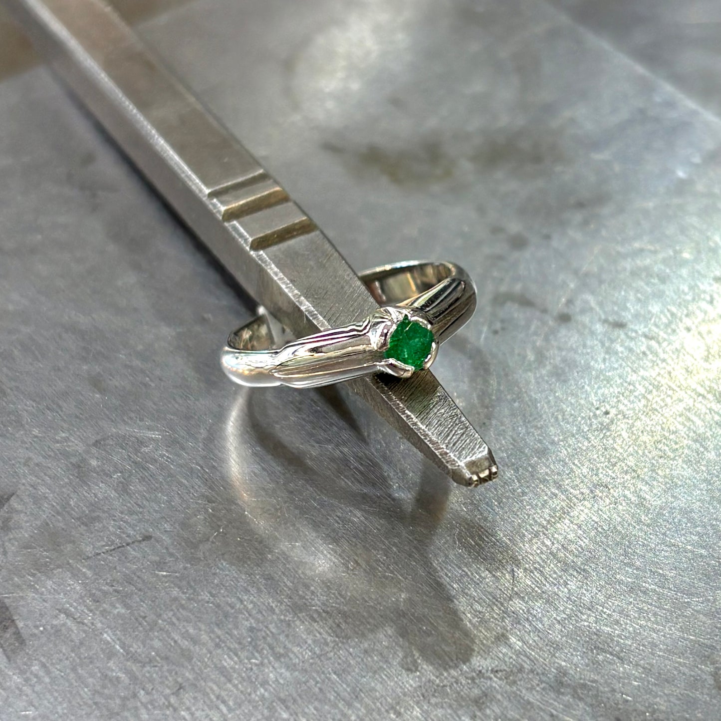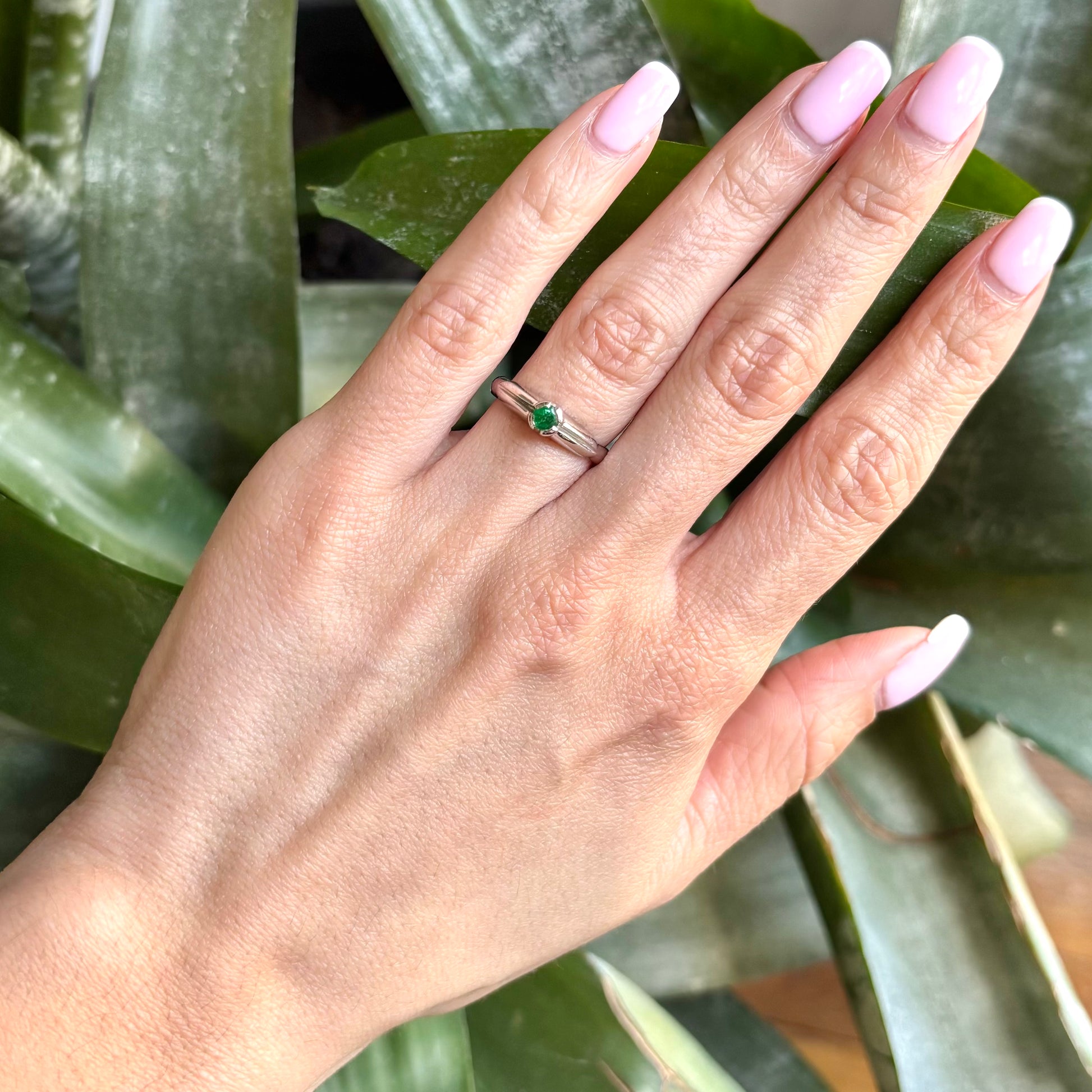 Bague Solitaire - Or Blanc 750 & Émeraude