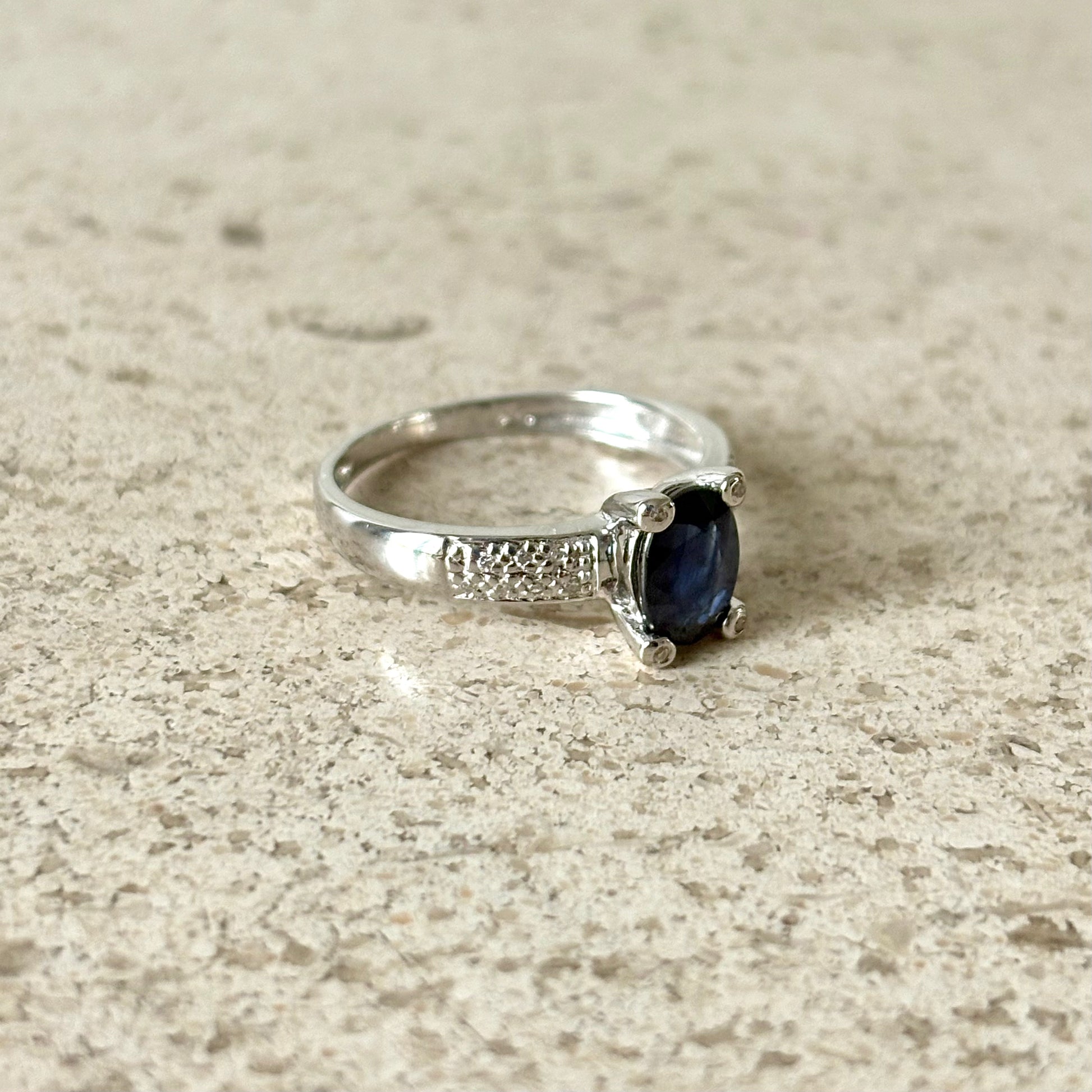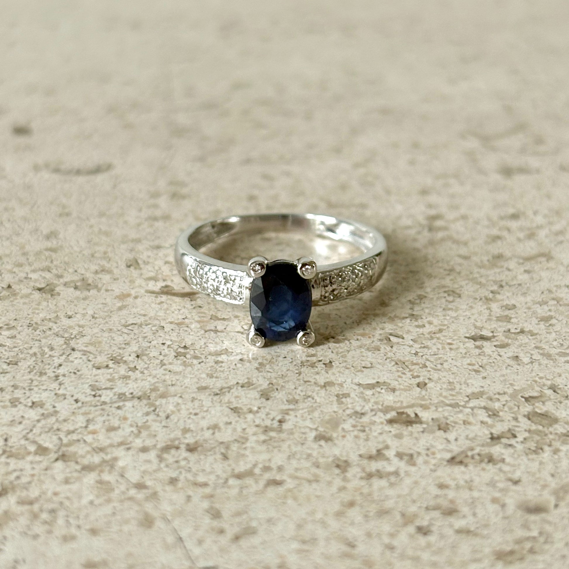 Bague Solitaire - Or Blanc 750 Saphir & Diamants