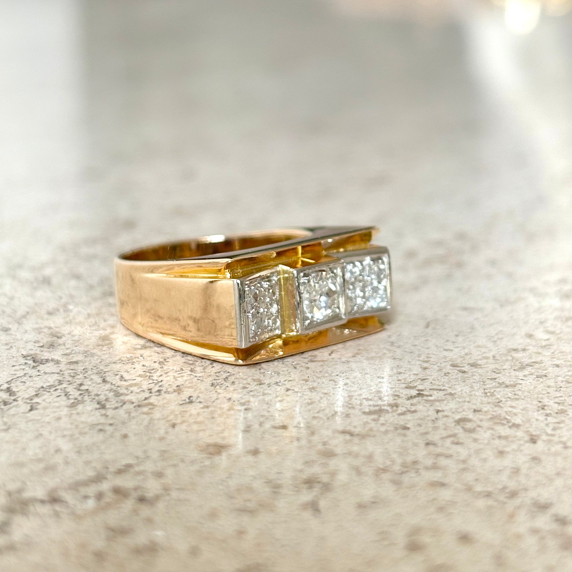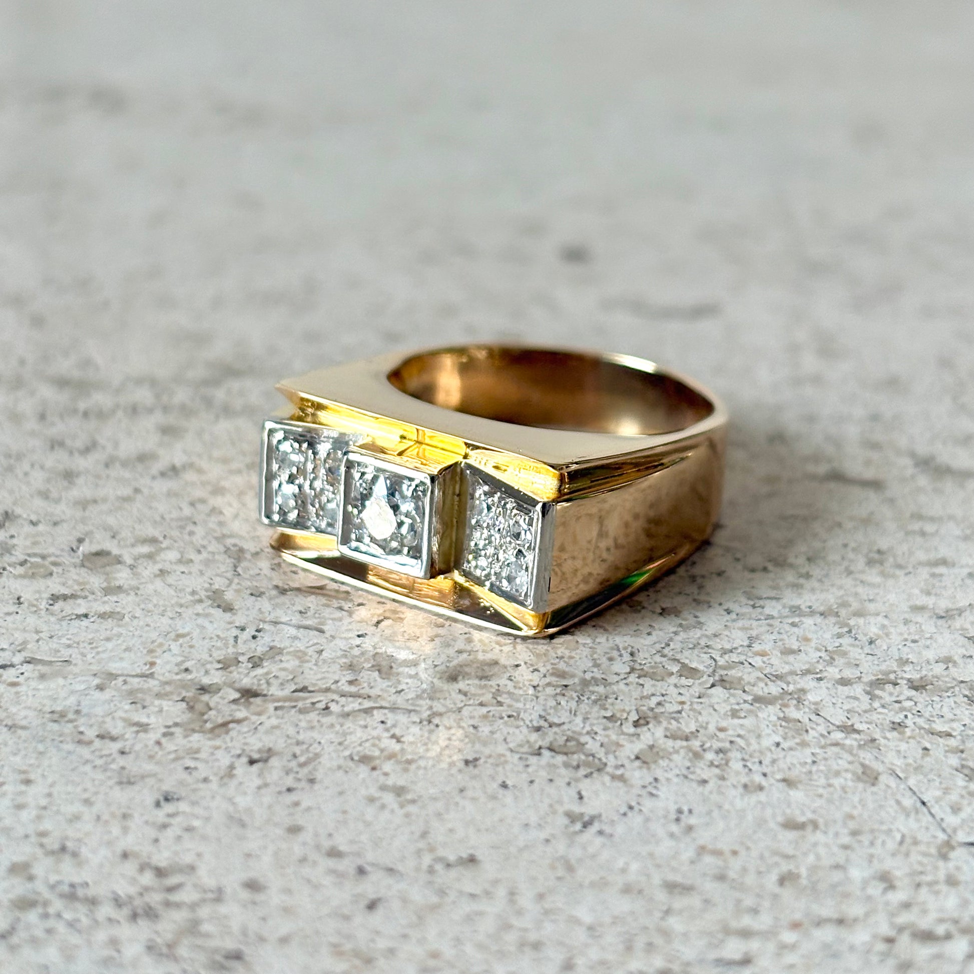 Bague Tank Art Déco - Or Jaune 750 & Diamants