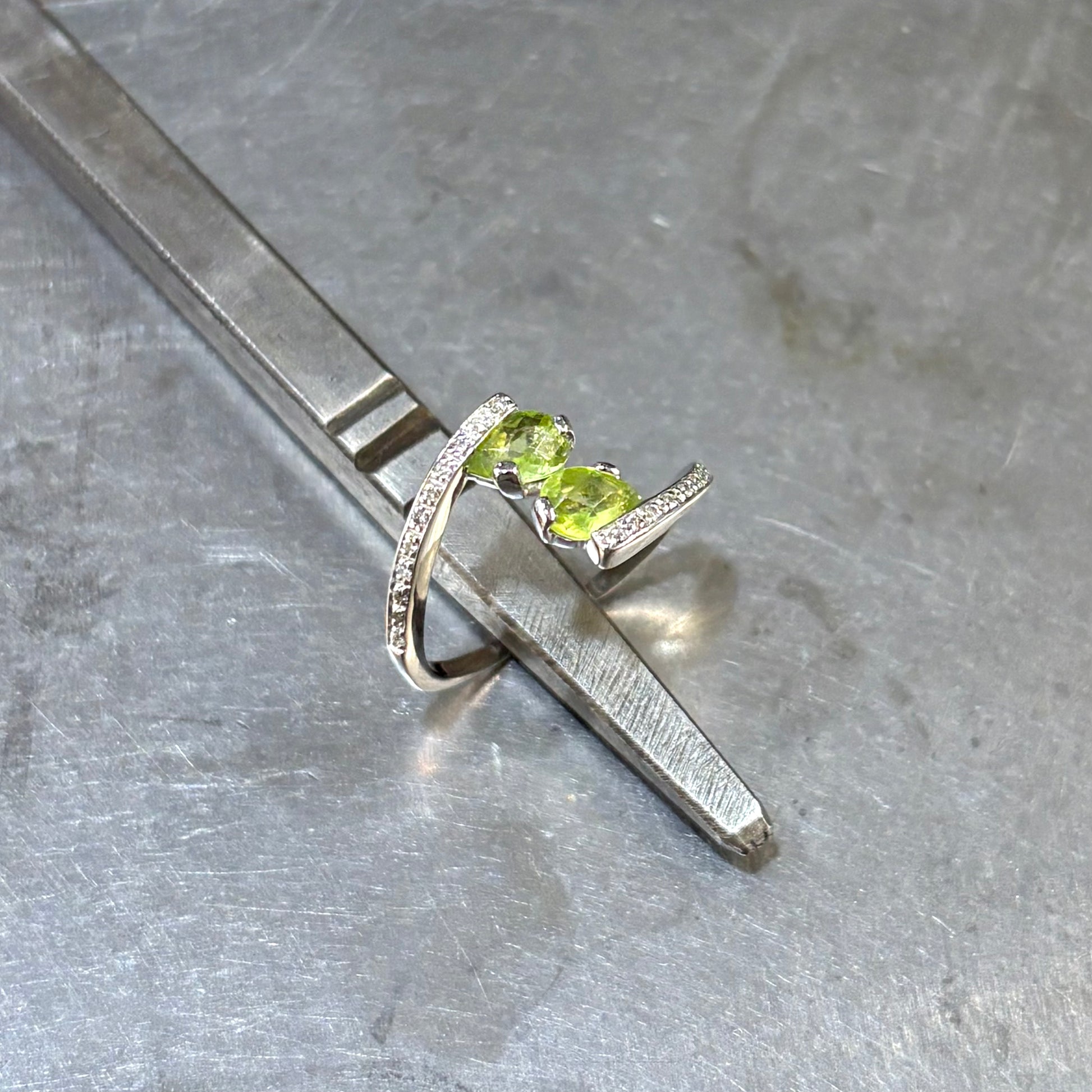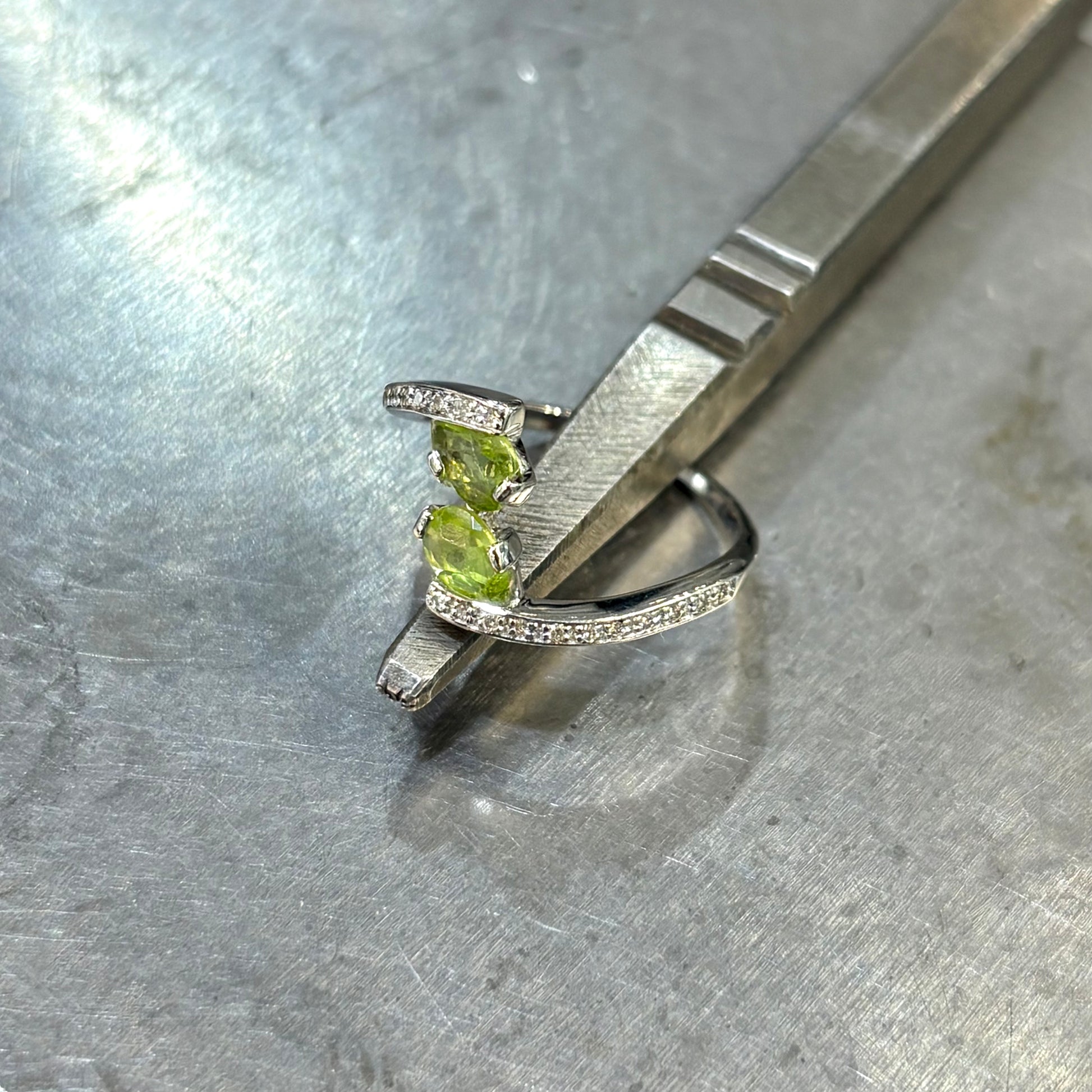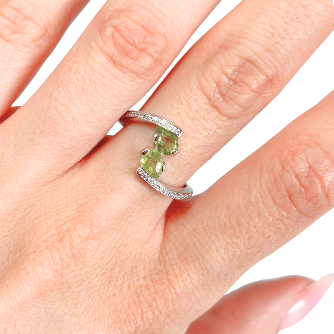 Bague Toi & Moi - Or Blanc 750 Diamant & Péridots