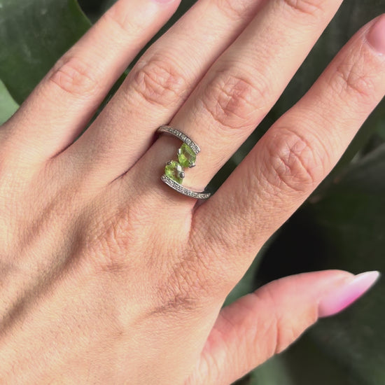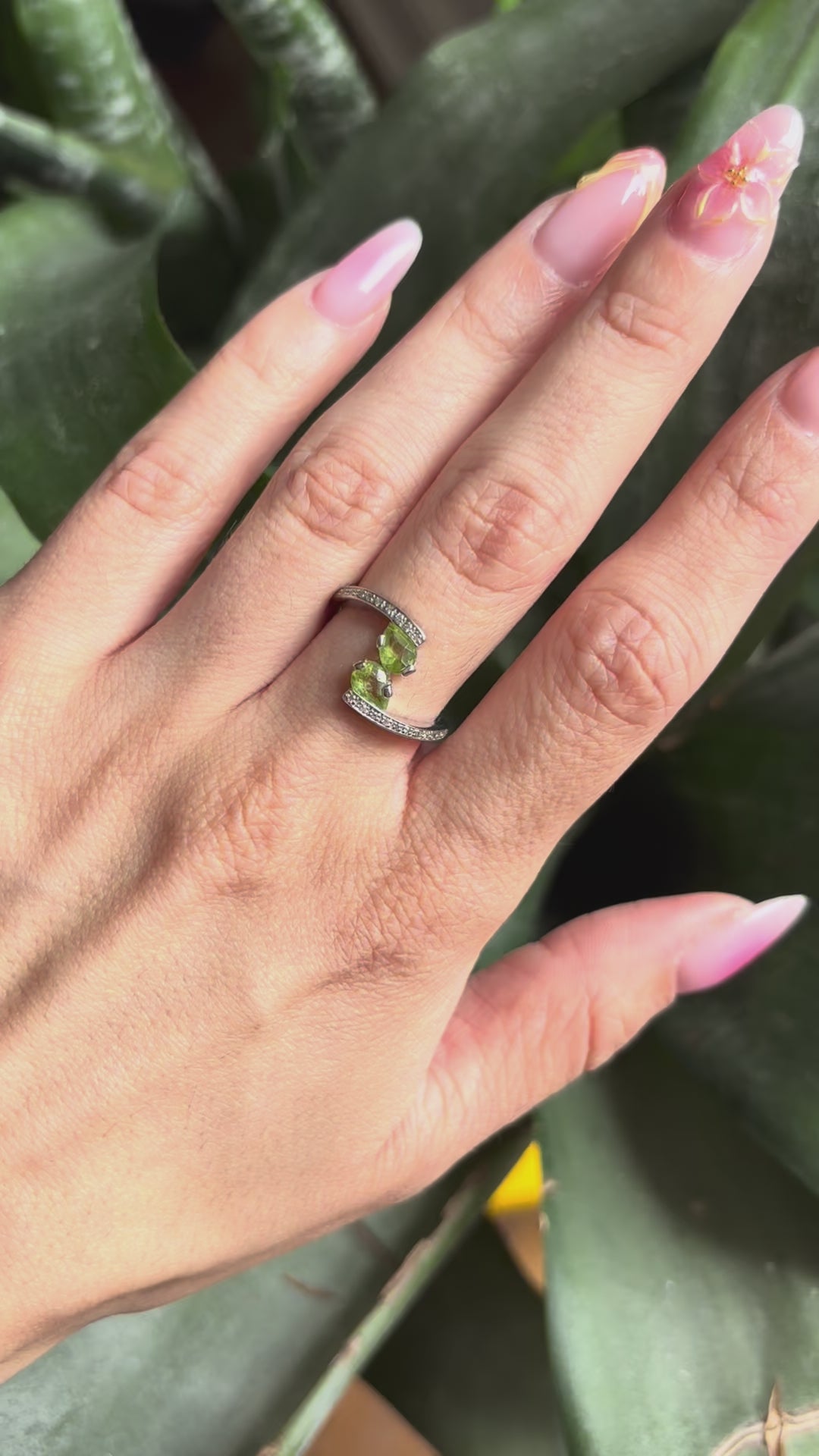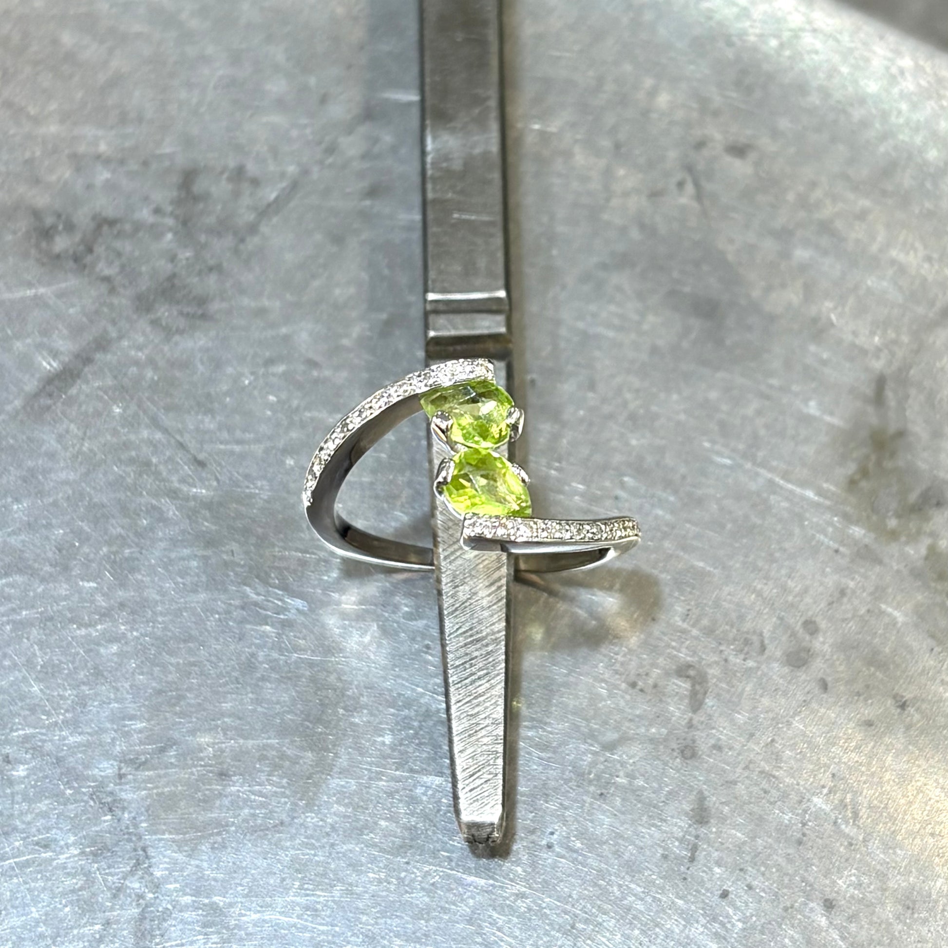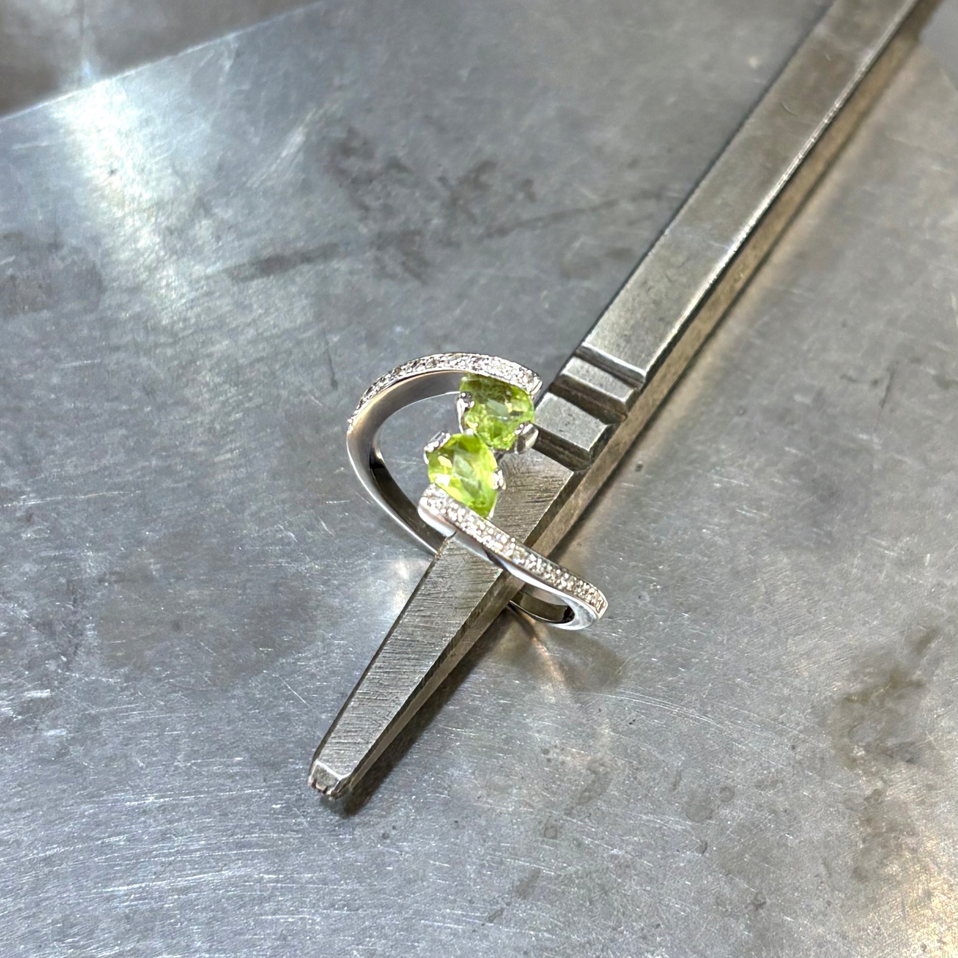 Bague Toi & Moi - Or Blanc 750 Diamant & Péridots