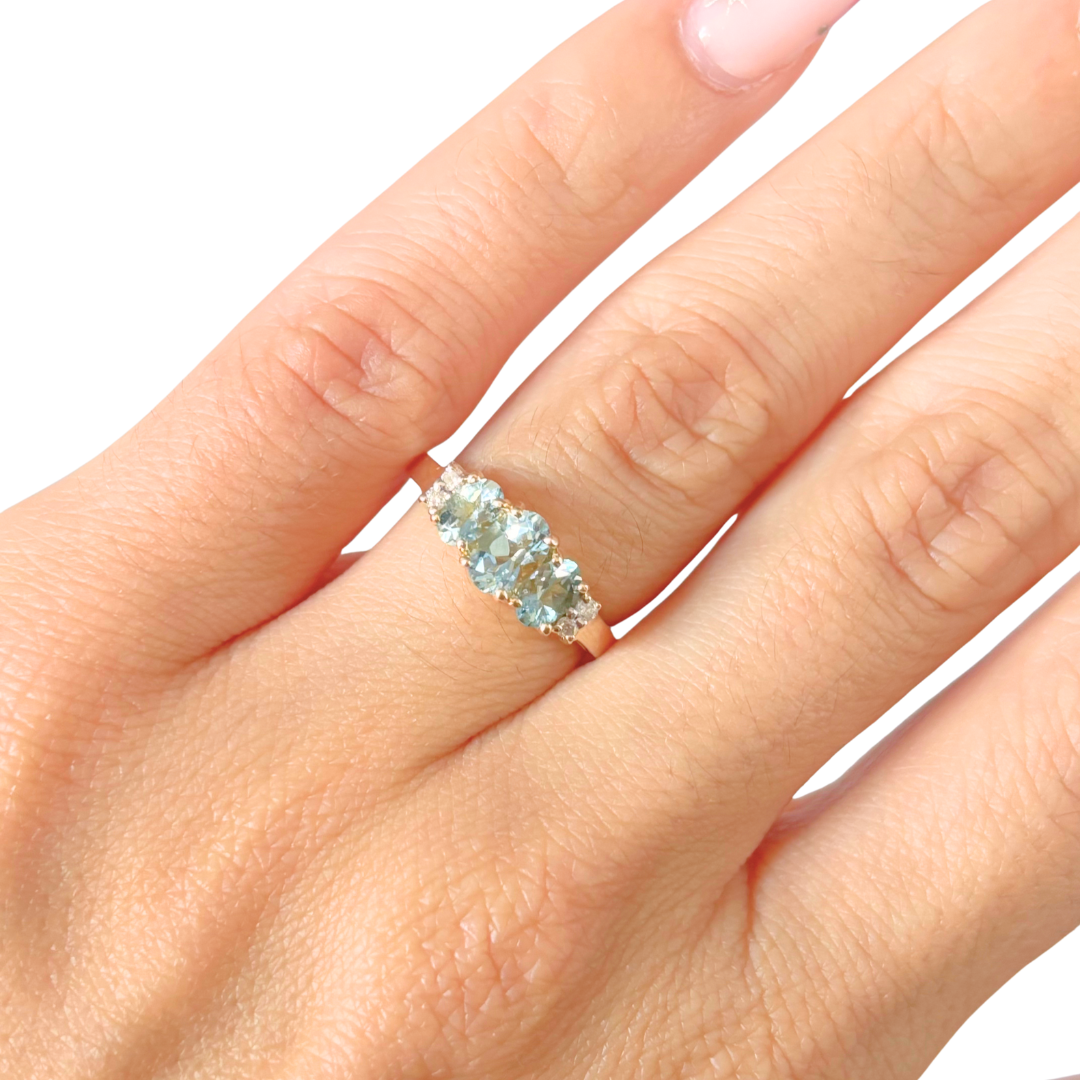 Bague Trilogie - Or Jaune 585 & Aigue-Marine