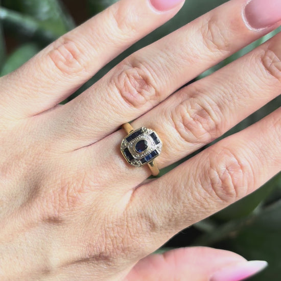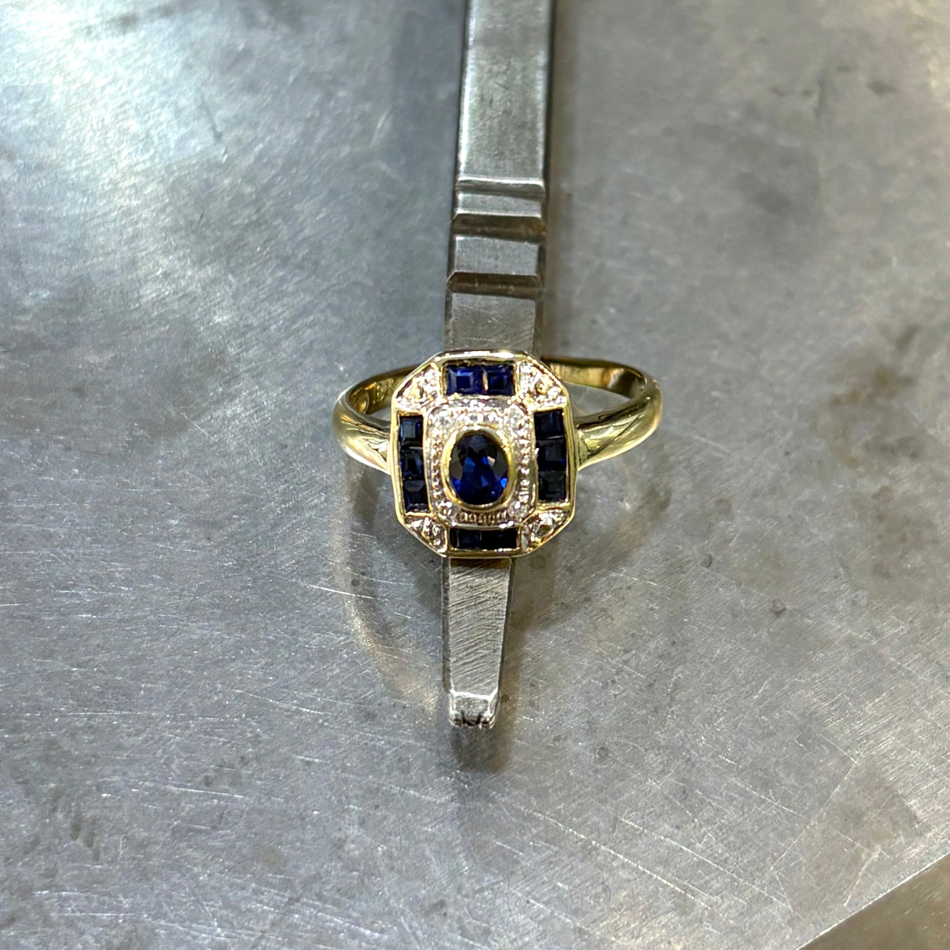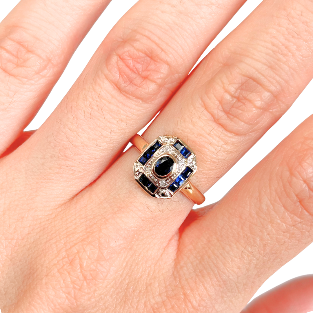 Bague Vintage Art Déco - Or Jaune 750 & Saphirs