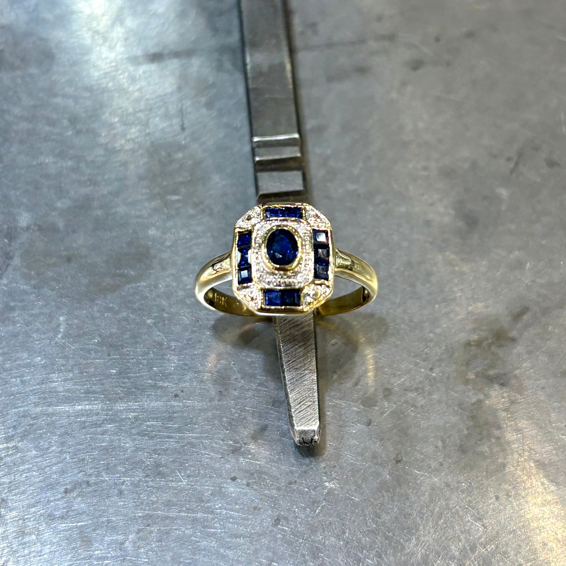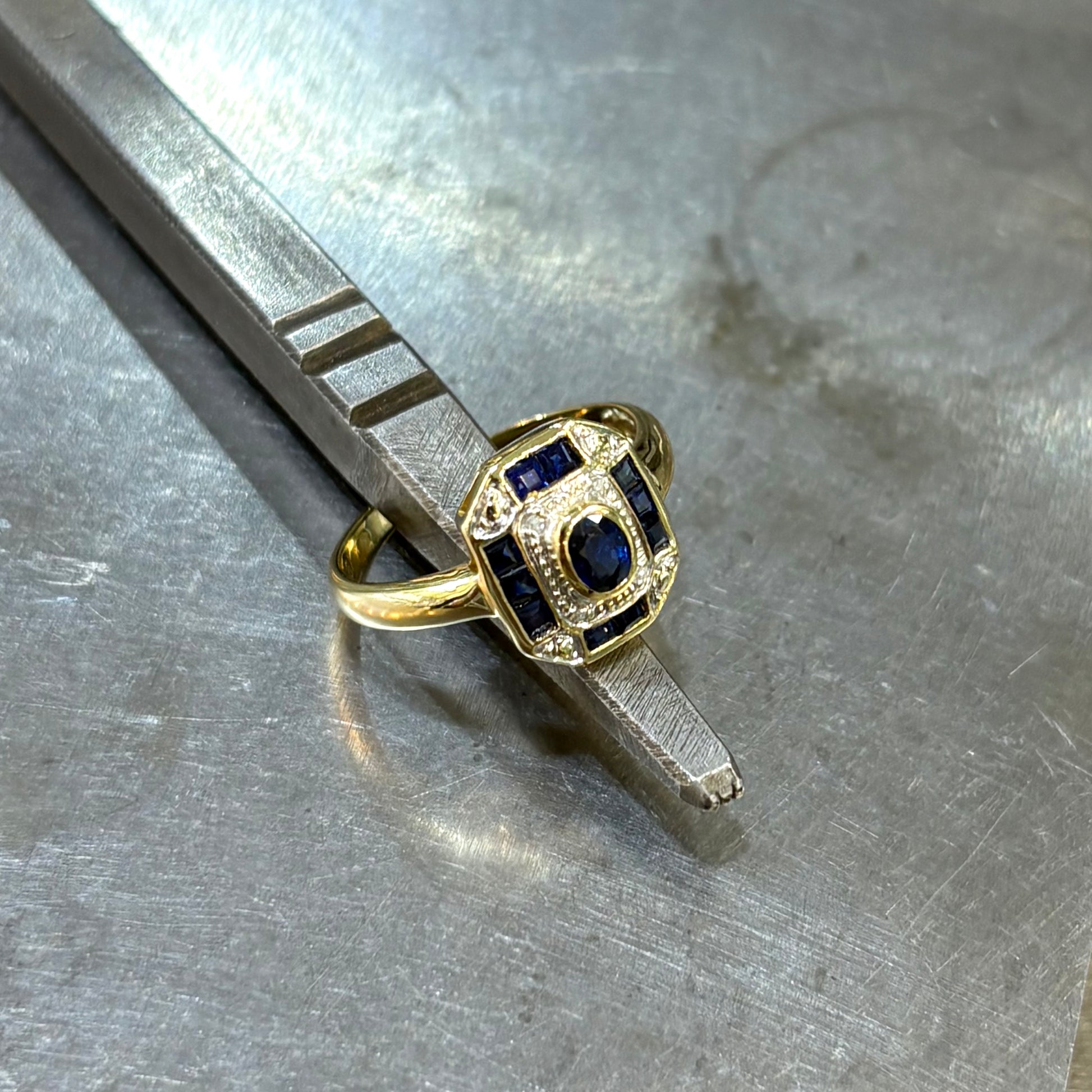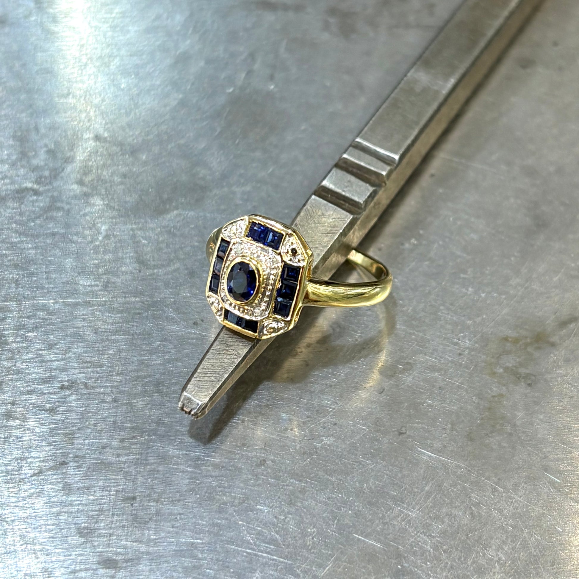 Bague Vintage Art Déco - Or Jaune 750 & Saphirs