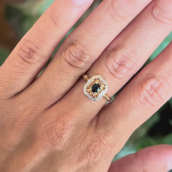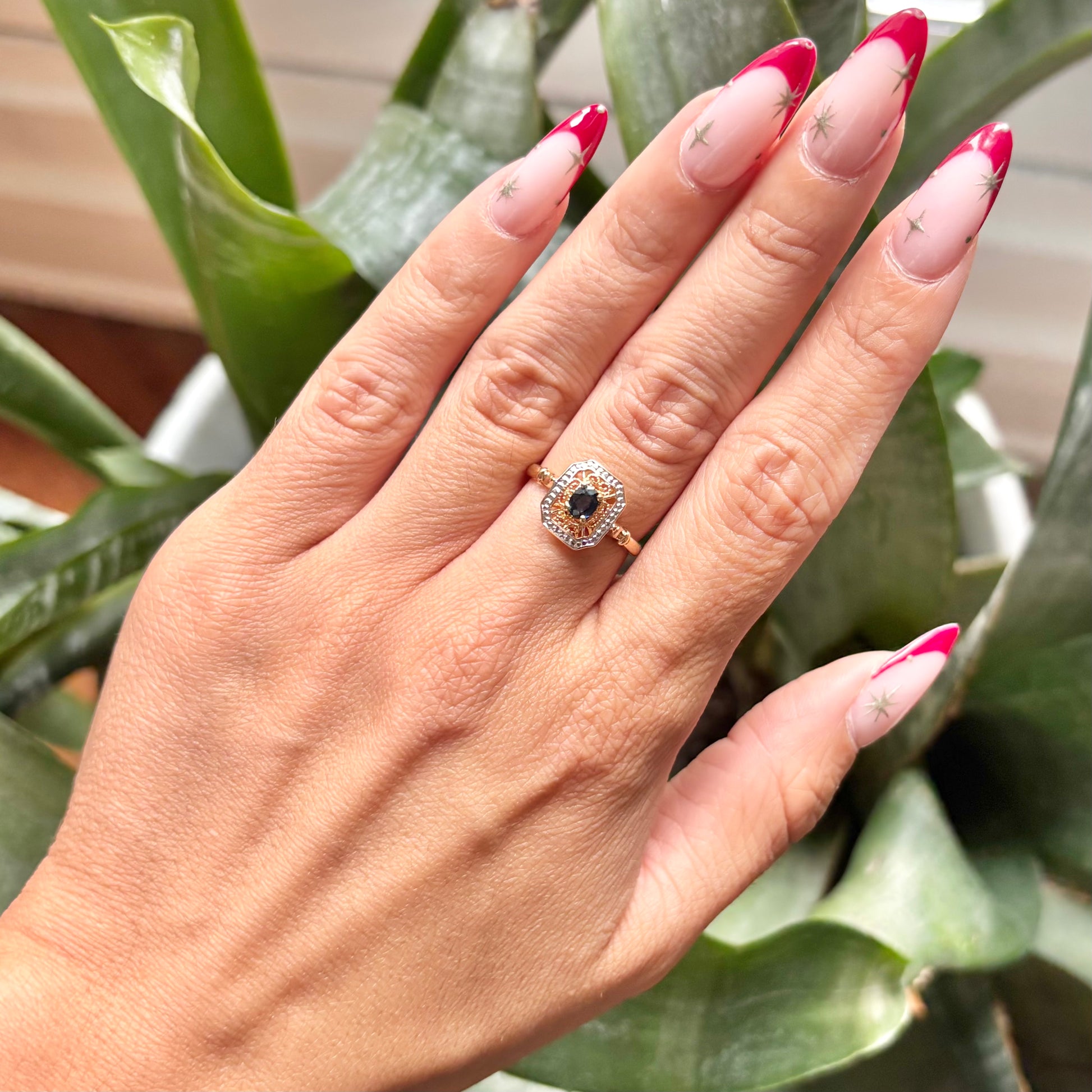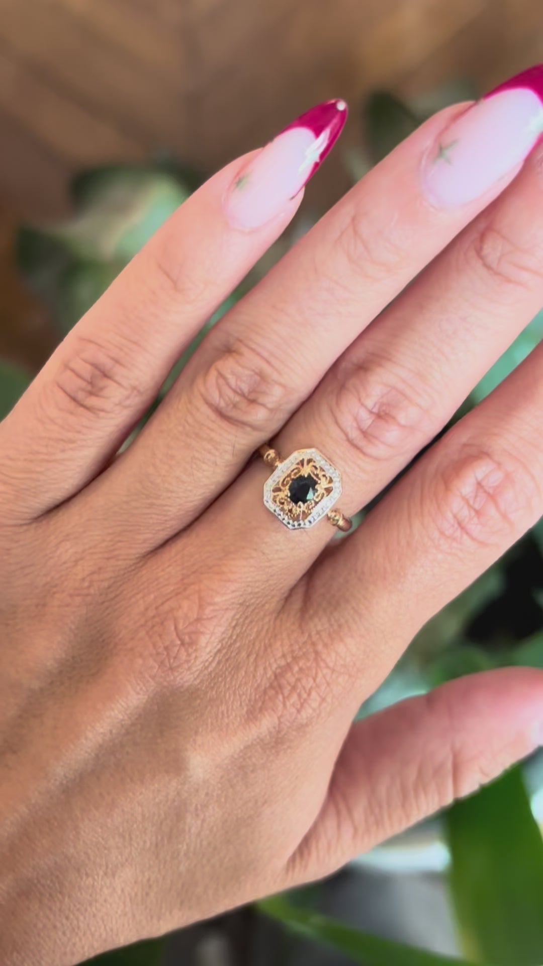 Bague Vintage Art Nouveau - Or Jaune 750 & Saphir