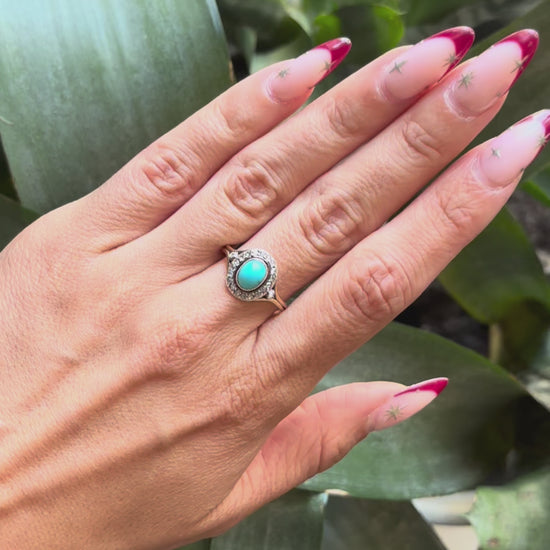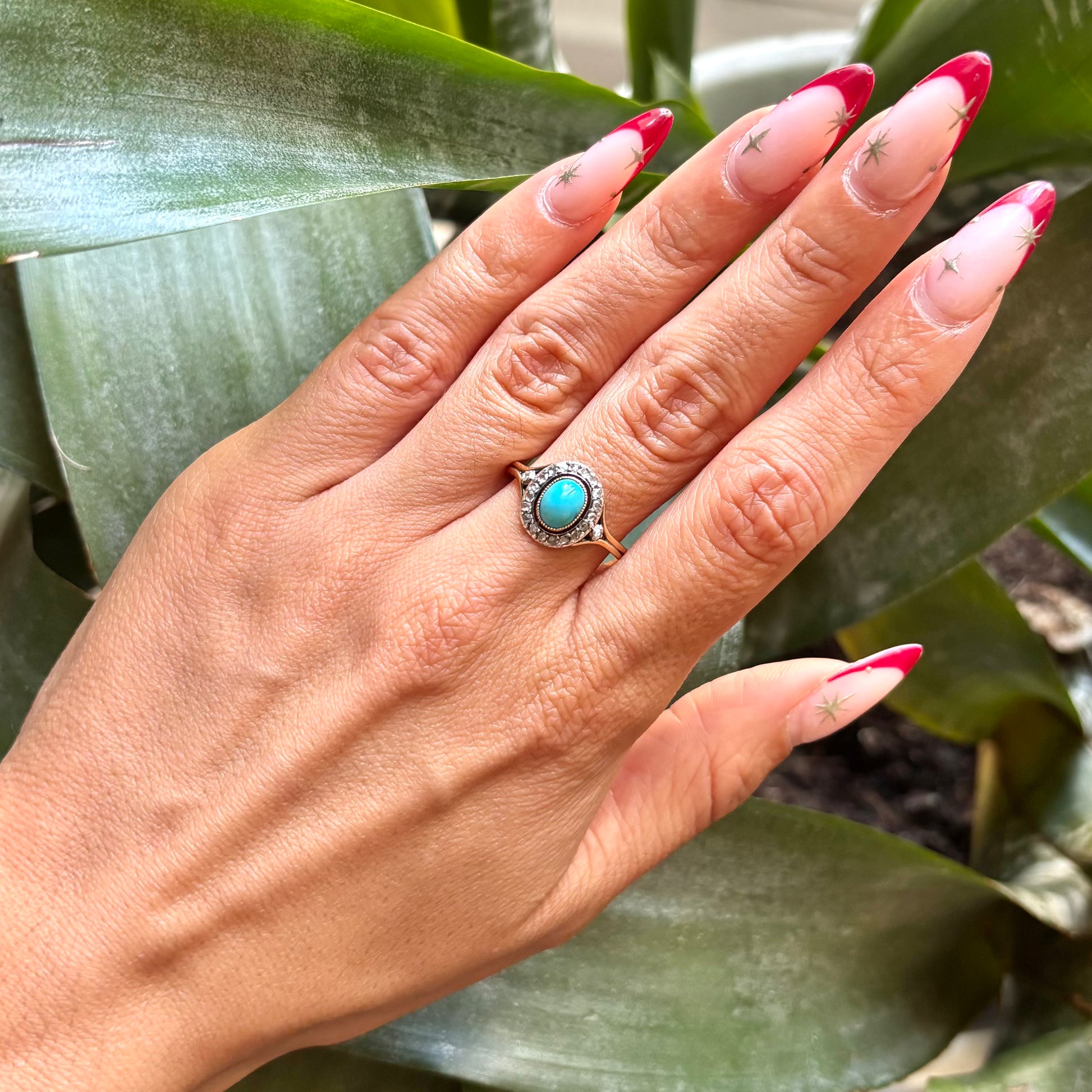 Bague Vintage - Or Jaune 750 Turquoise & Diamants