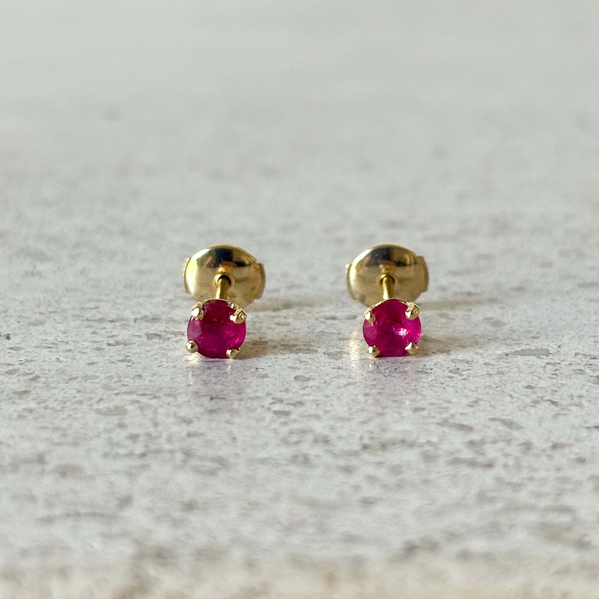 Boucles D'oreilles Puces - Or Jaune 750 & Rubis